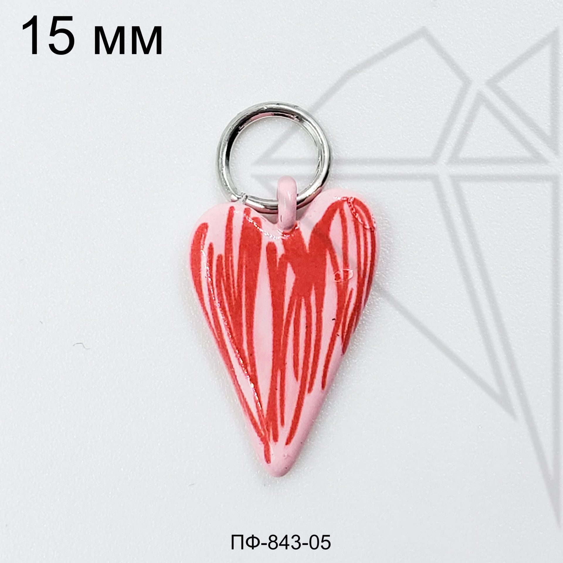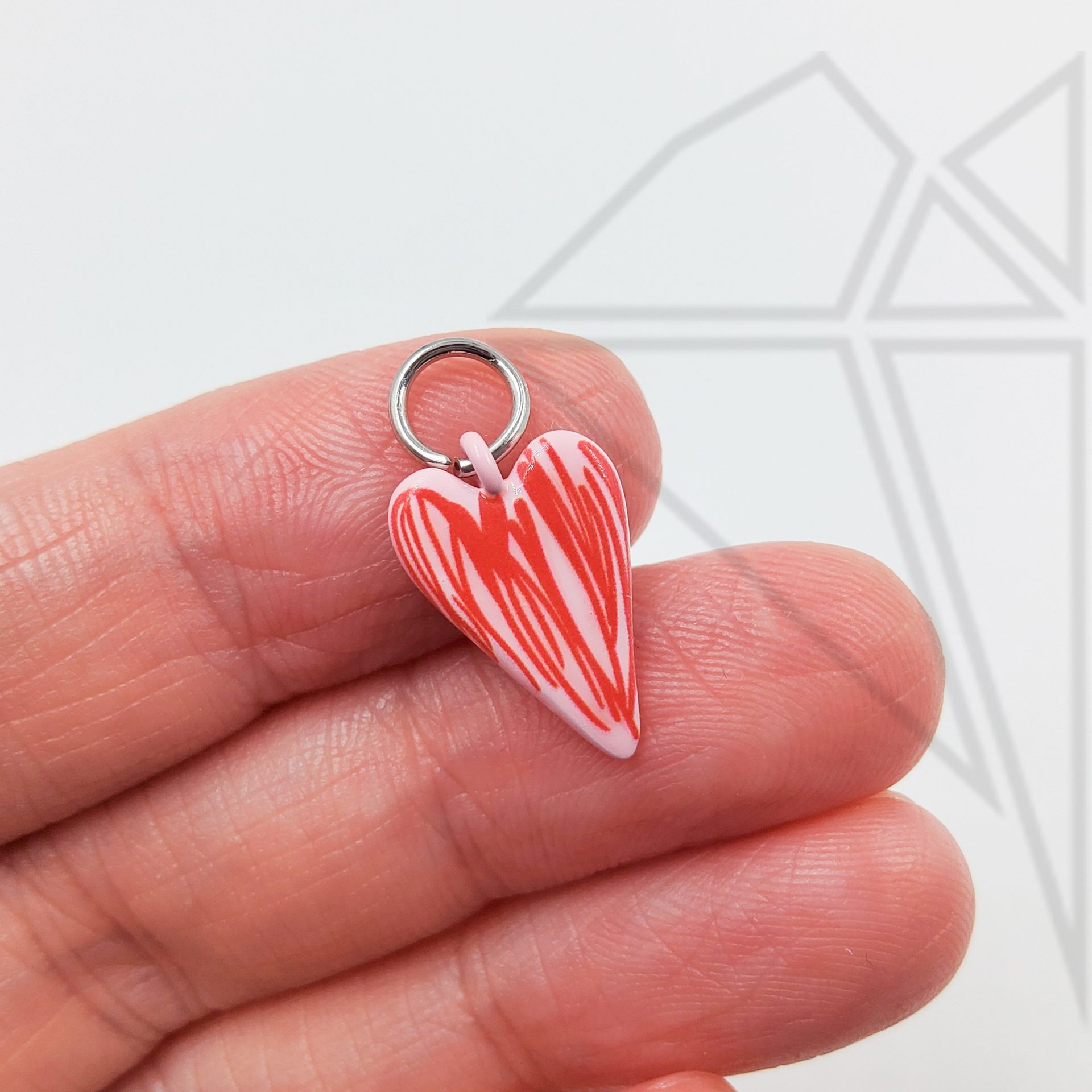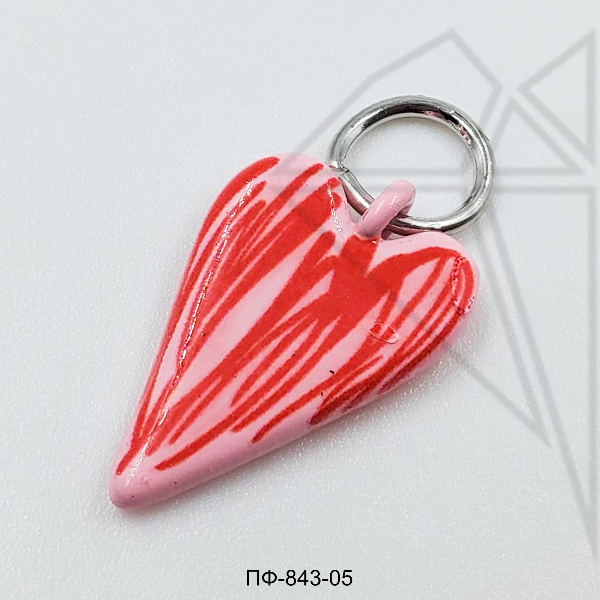 Подвеска покрыта розовой эмалью с красными полосами