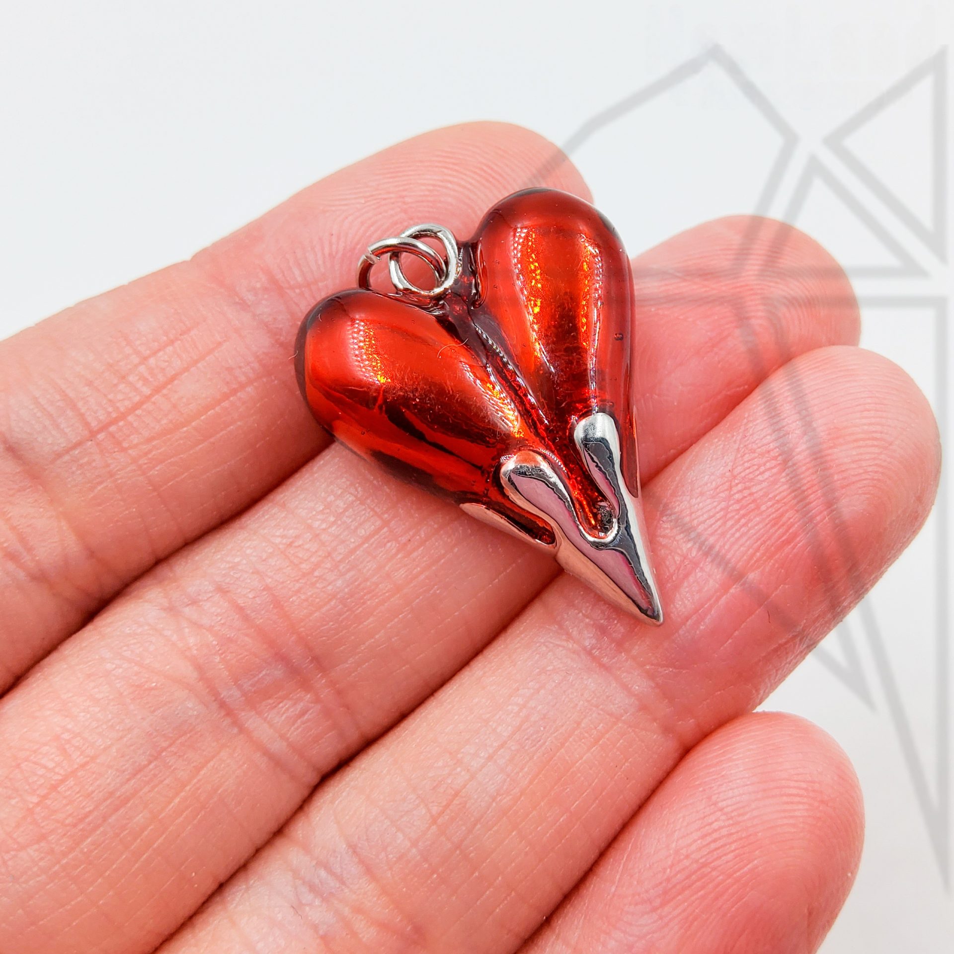 Подвеска сердце красного цвета класса люкс с родированным покрытием (по латуни).