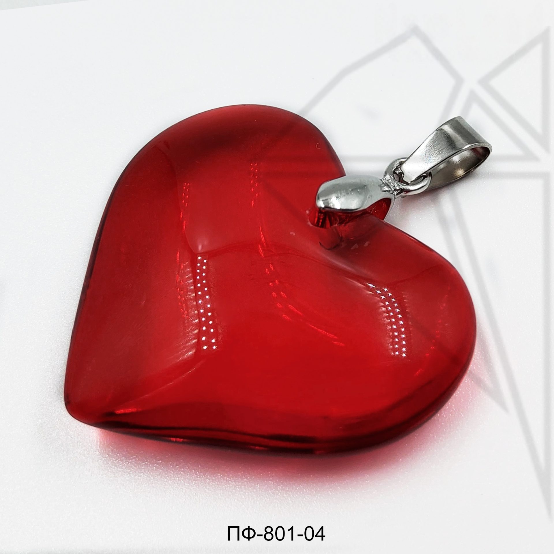 Подвеска сердце стеклянное БЕЗ бейла серебристого цвета.