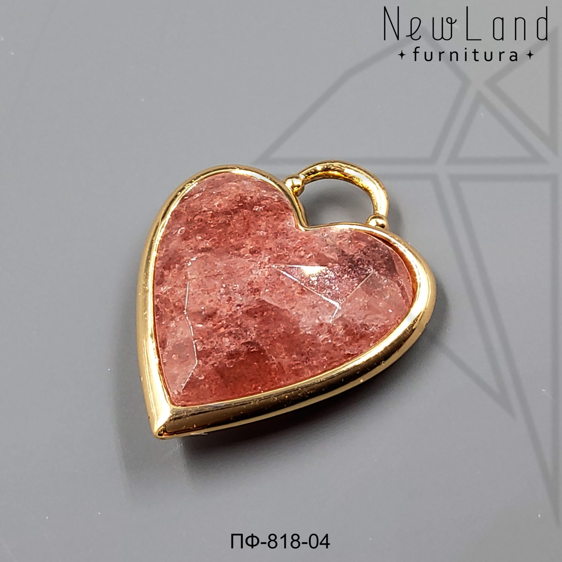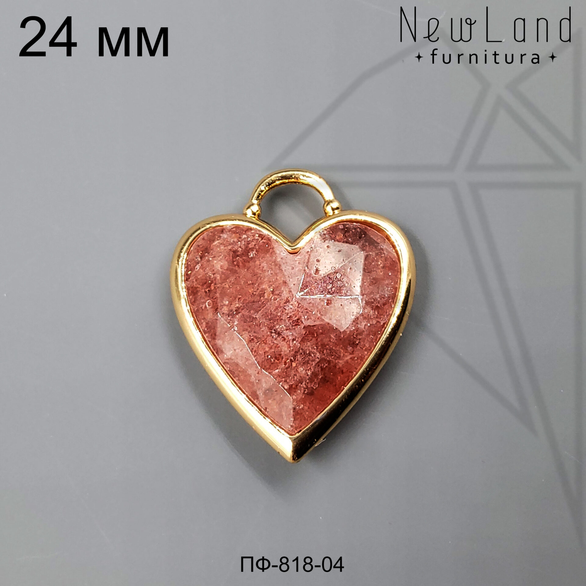 Подвеска в форме сердца с вставкой из кварца клубничного 24 мм класса люкс с позолоченным покрытием (по латуни)
