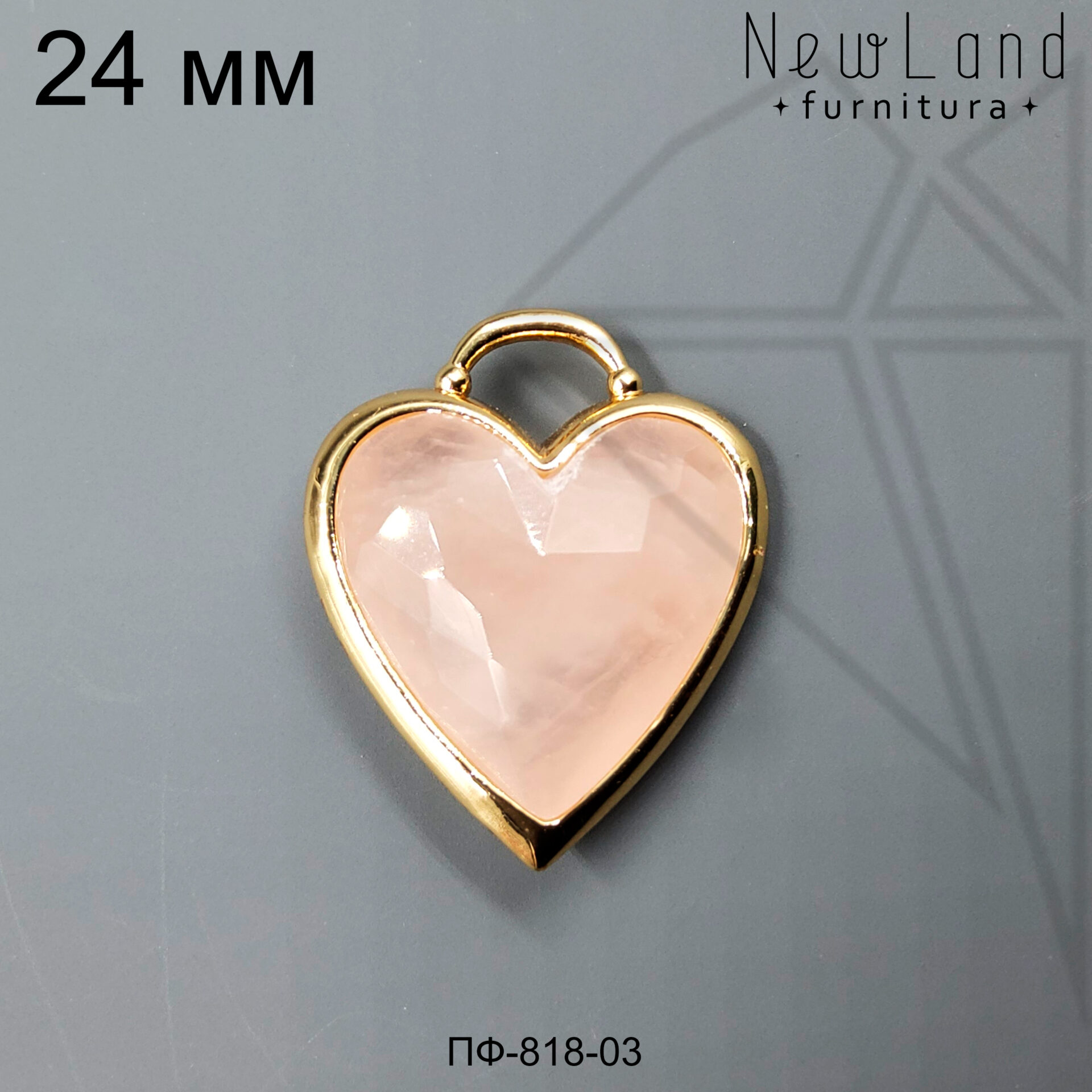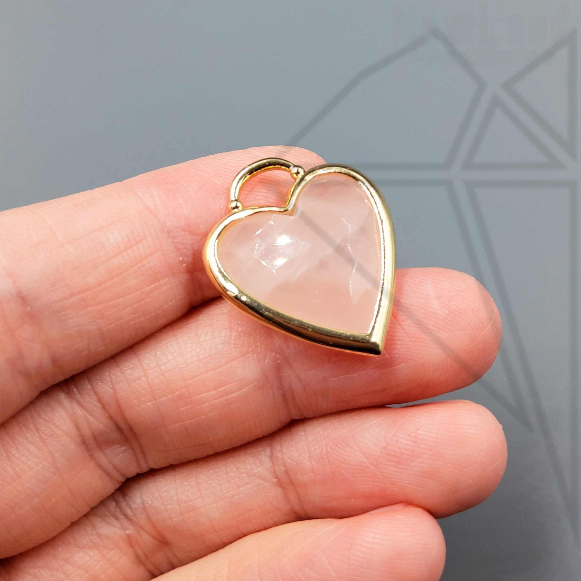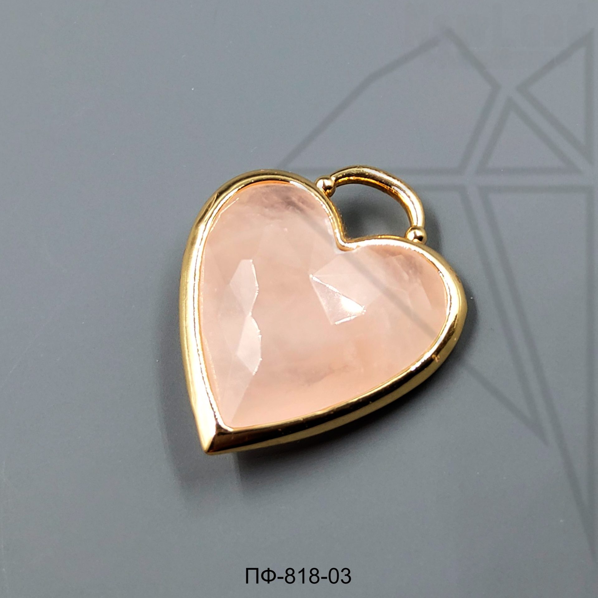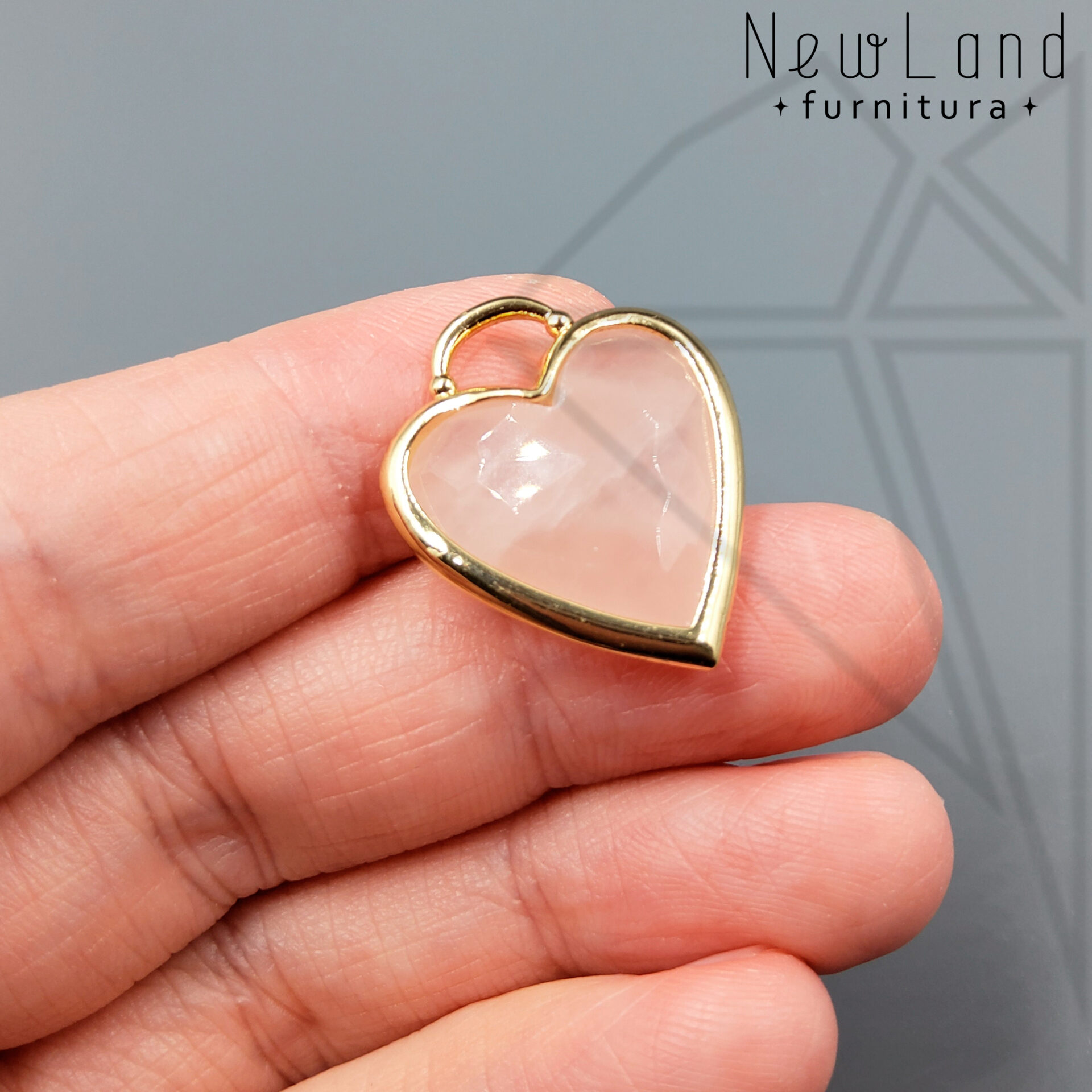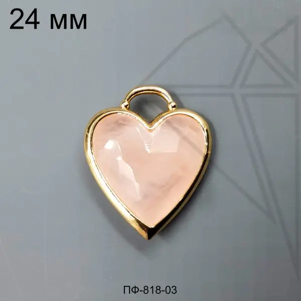 Подвеска в форме сердца с вставкой из кварца розового 24 мм класса люкс с позолоченным покрытием (по латуни)