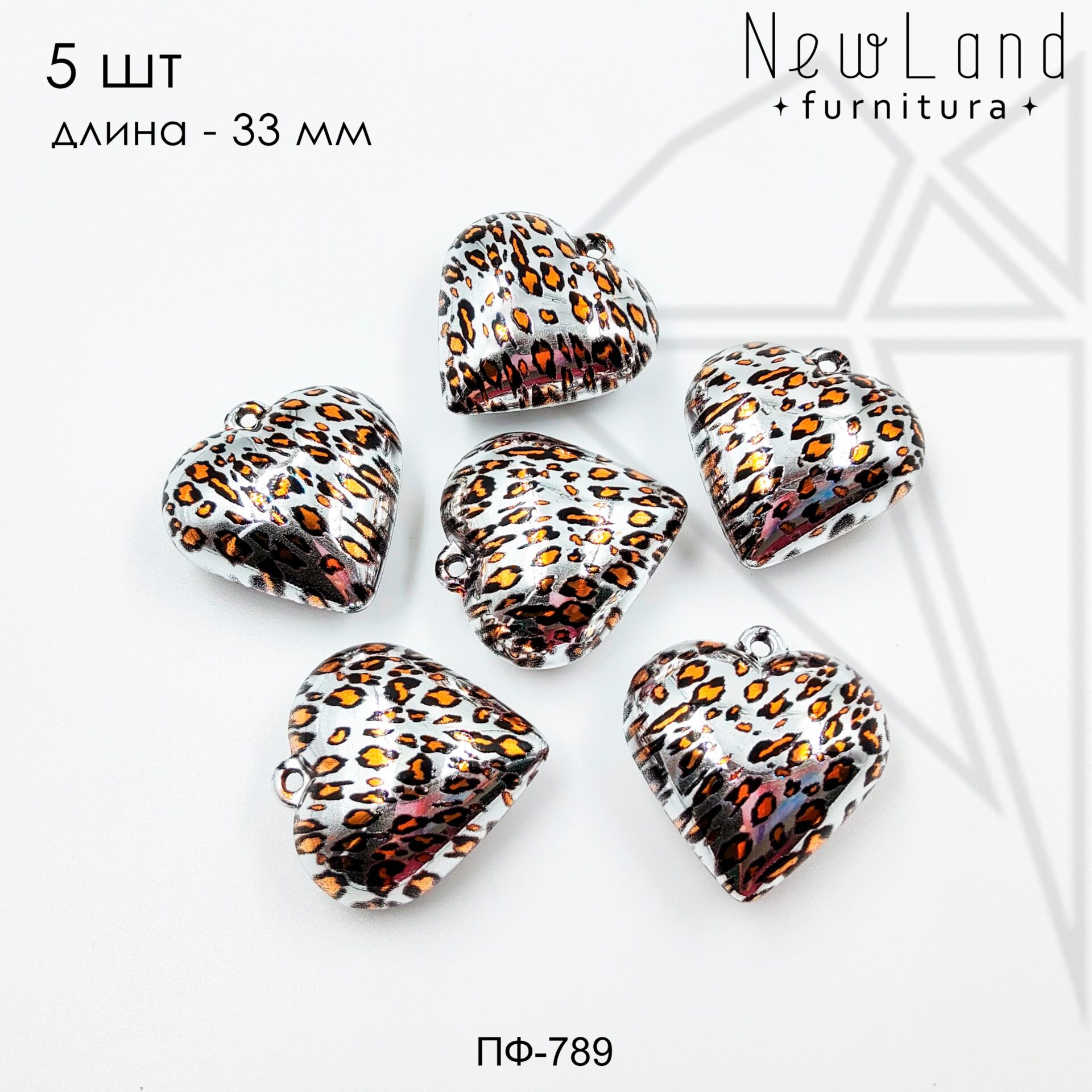Подвеска сердце из пластика с пятнышками как у леопарда класса люкс с родированным покрытием.