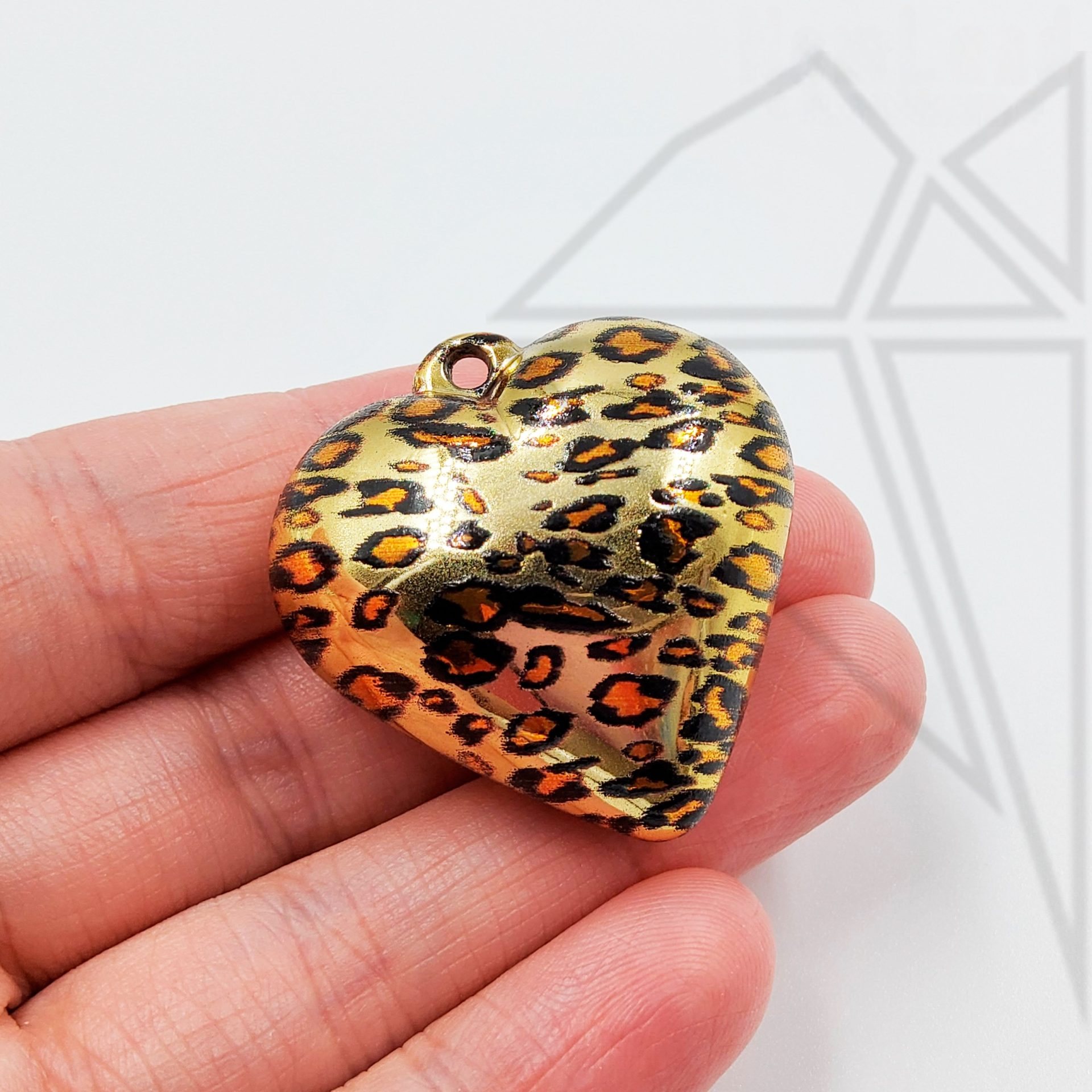 Подвеска сердце из пластика с пятнышками как у леопарда класса люкс с позолоченным покрытием.
