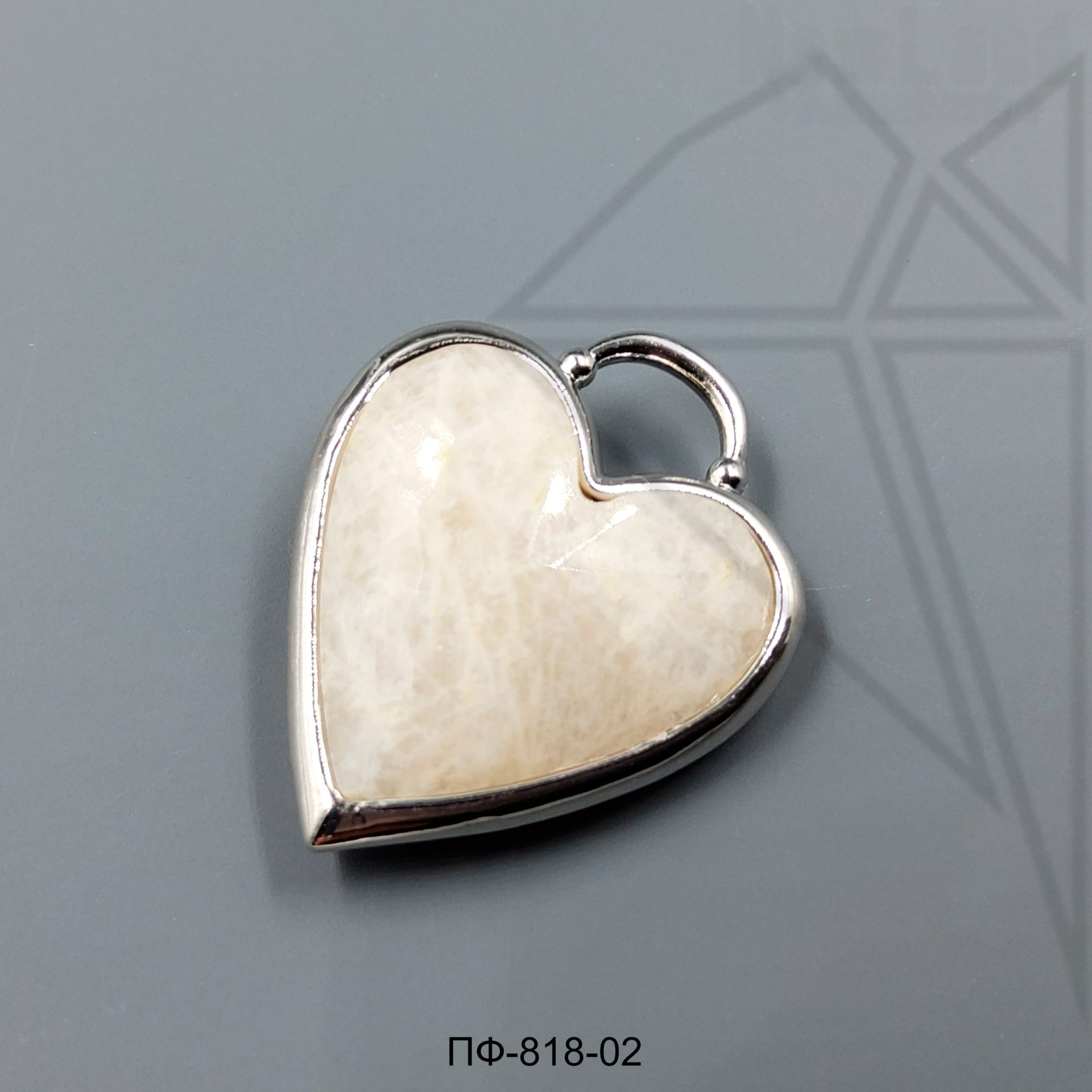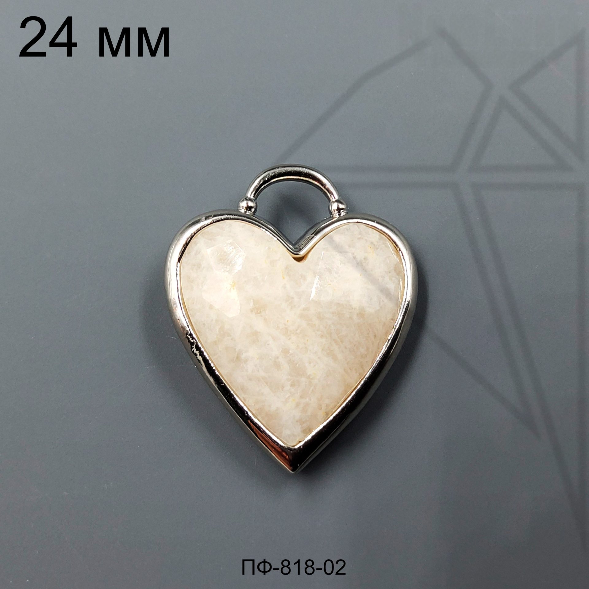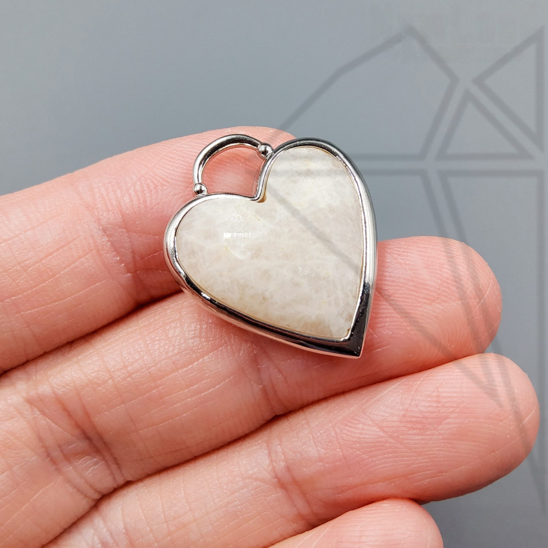 Подвеска в форме сердца с вставкой из лунного камня 24 мм класса люкс с родированным покрытием (по латуни)