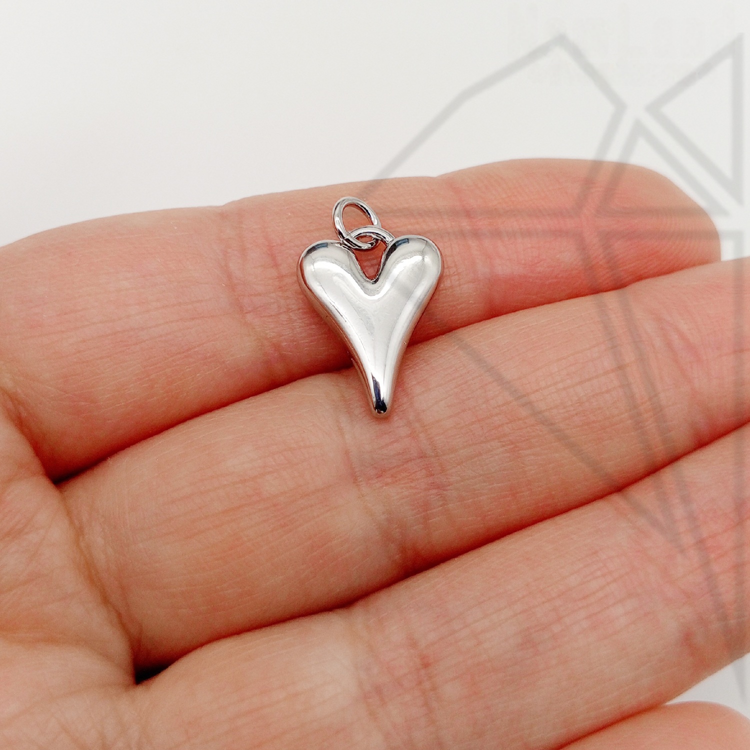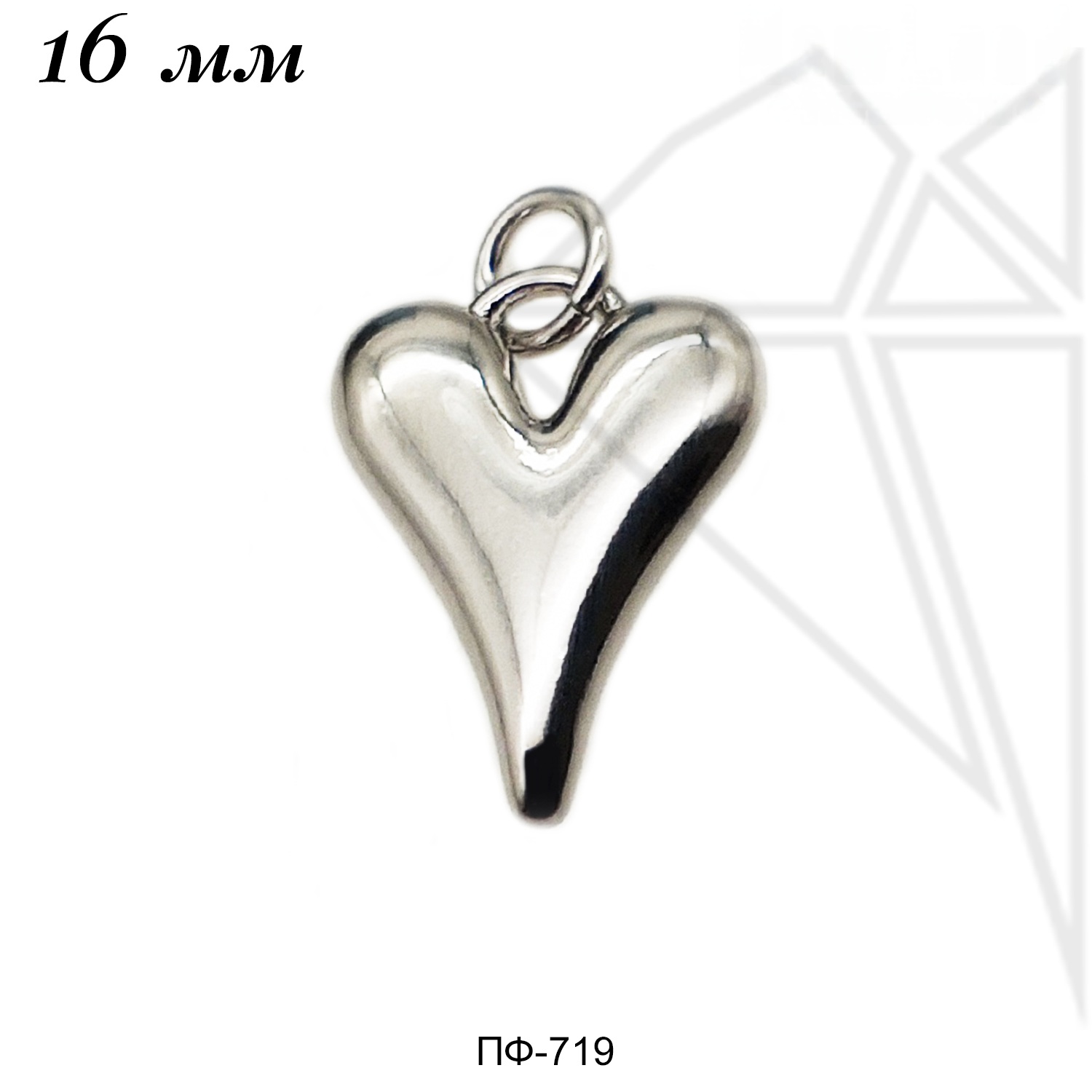 Подвеска в форме сердца 16 мм класса люкс с родированным покрытием (по латуни).