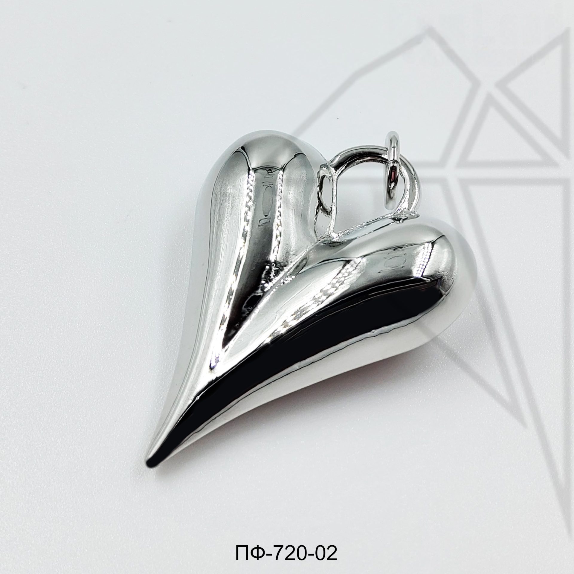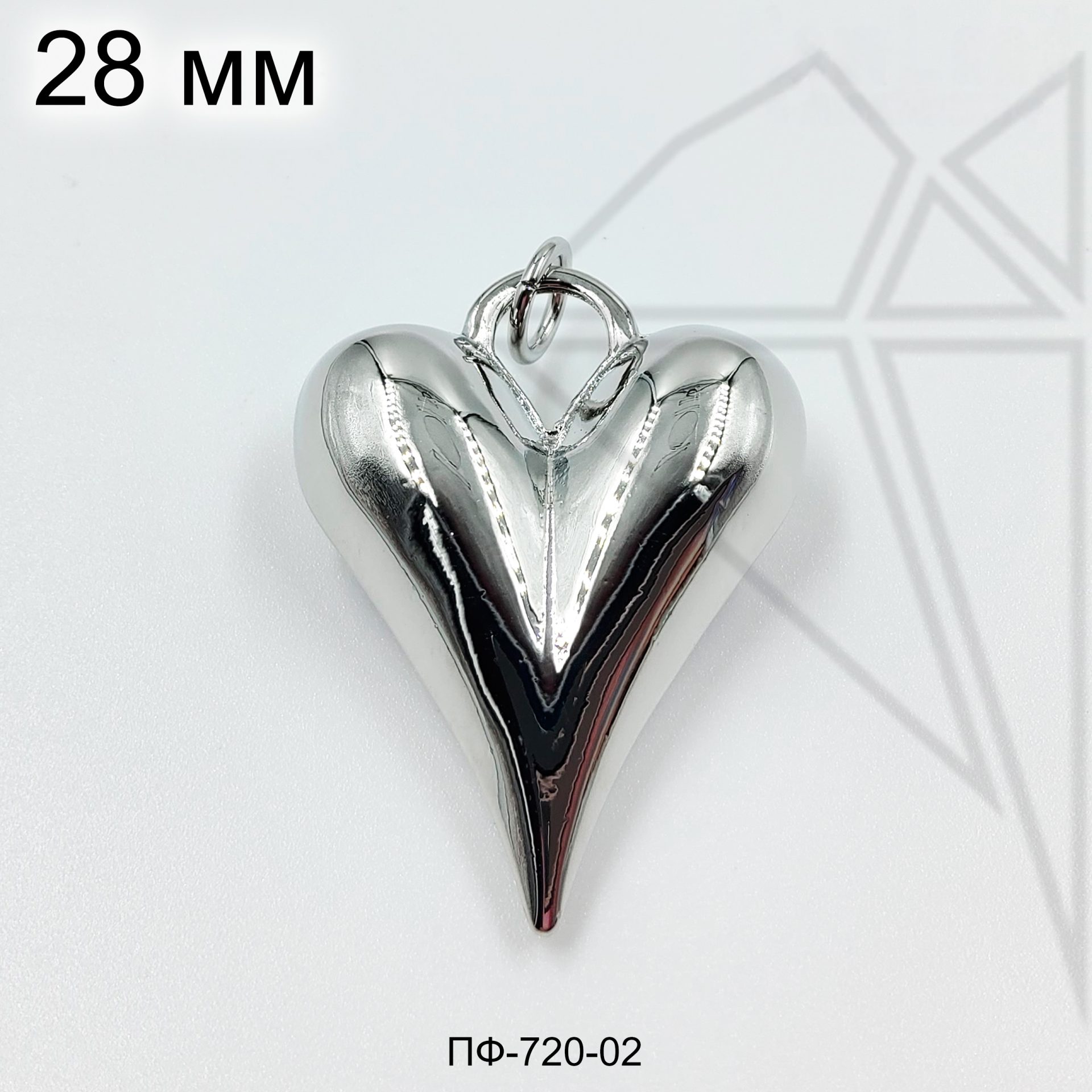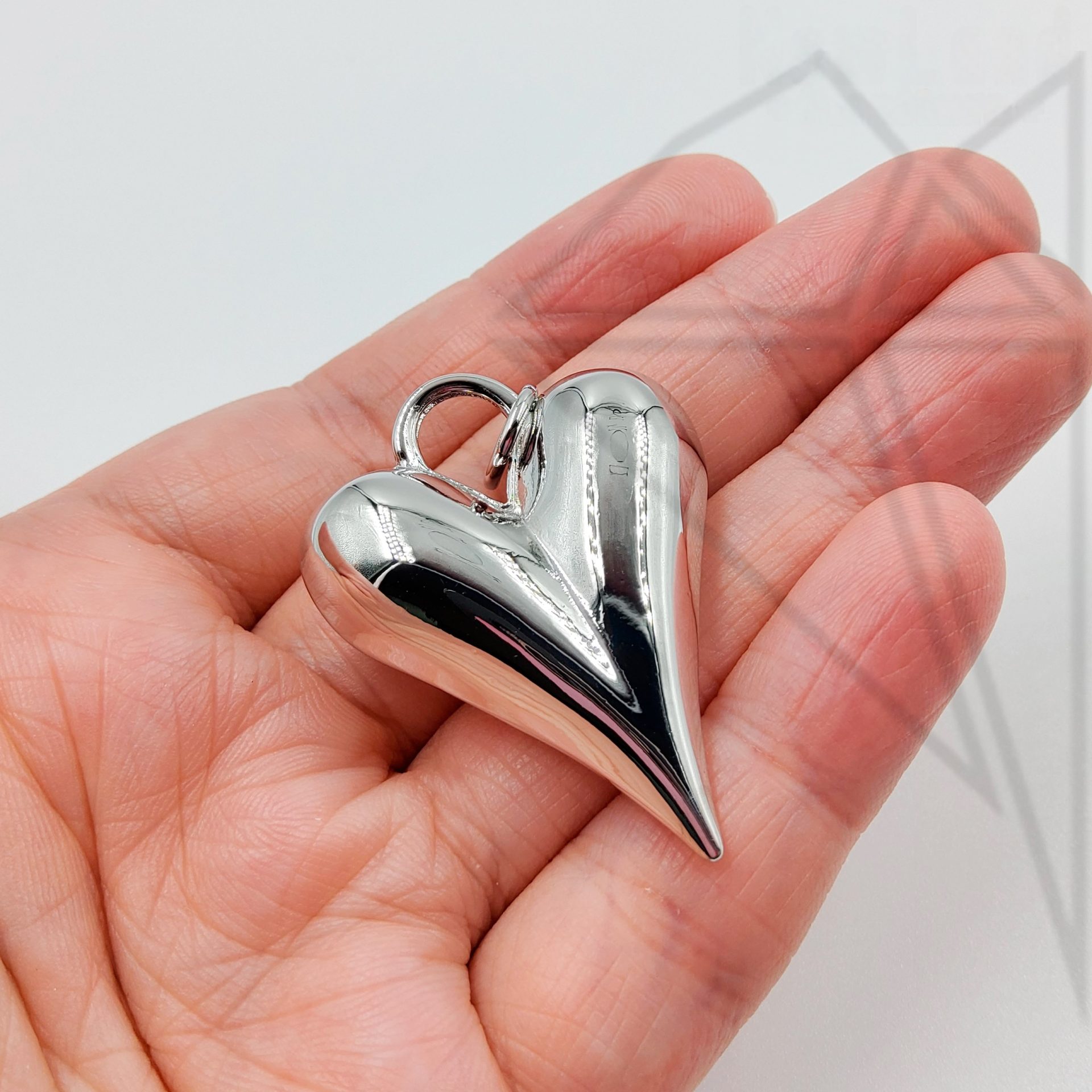Подвеска в форме сердца 32 мм класса люкс с родированным покрытием (по латуни).
