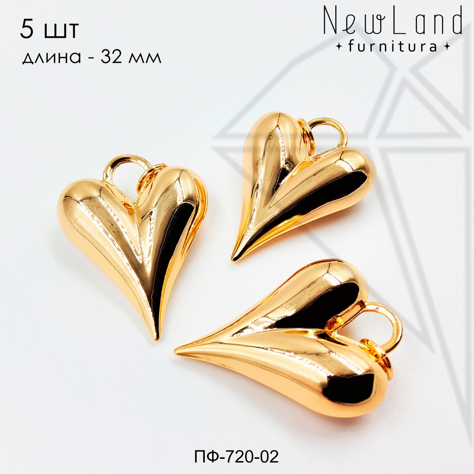 Подвеска в форме сердца 32 мм класса люкс с позолоченным покрытием (по латуни).