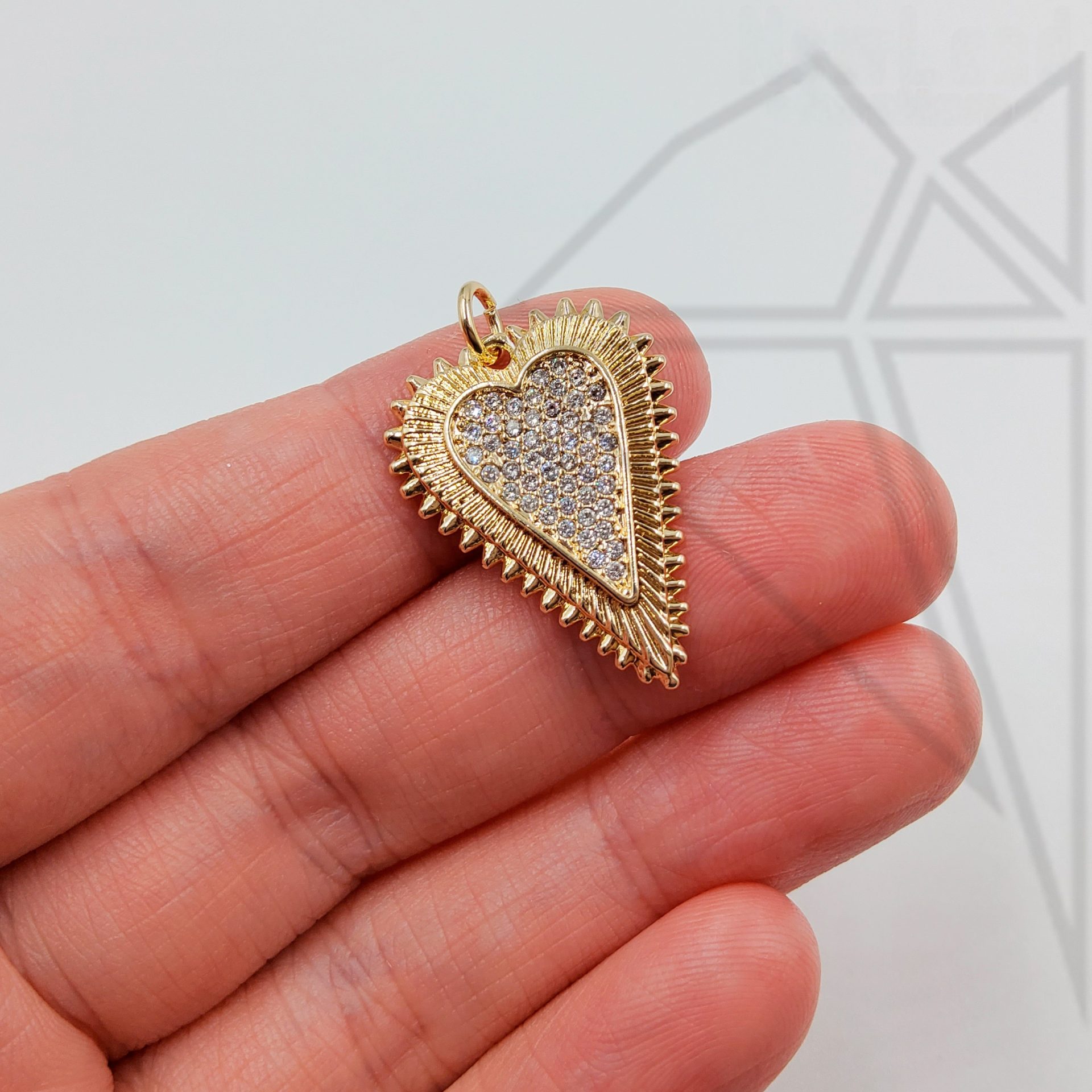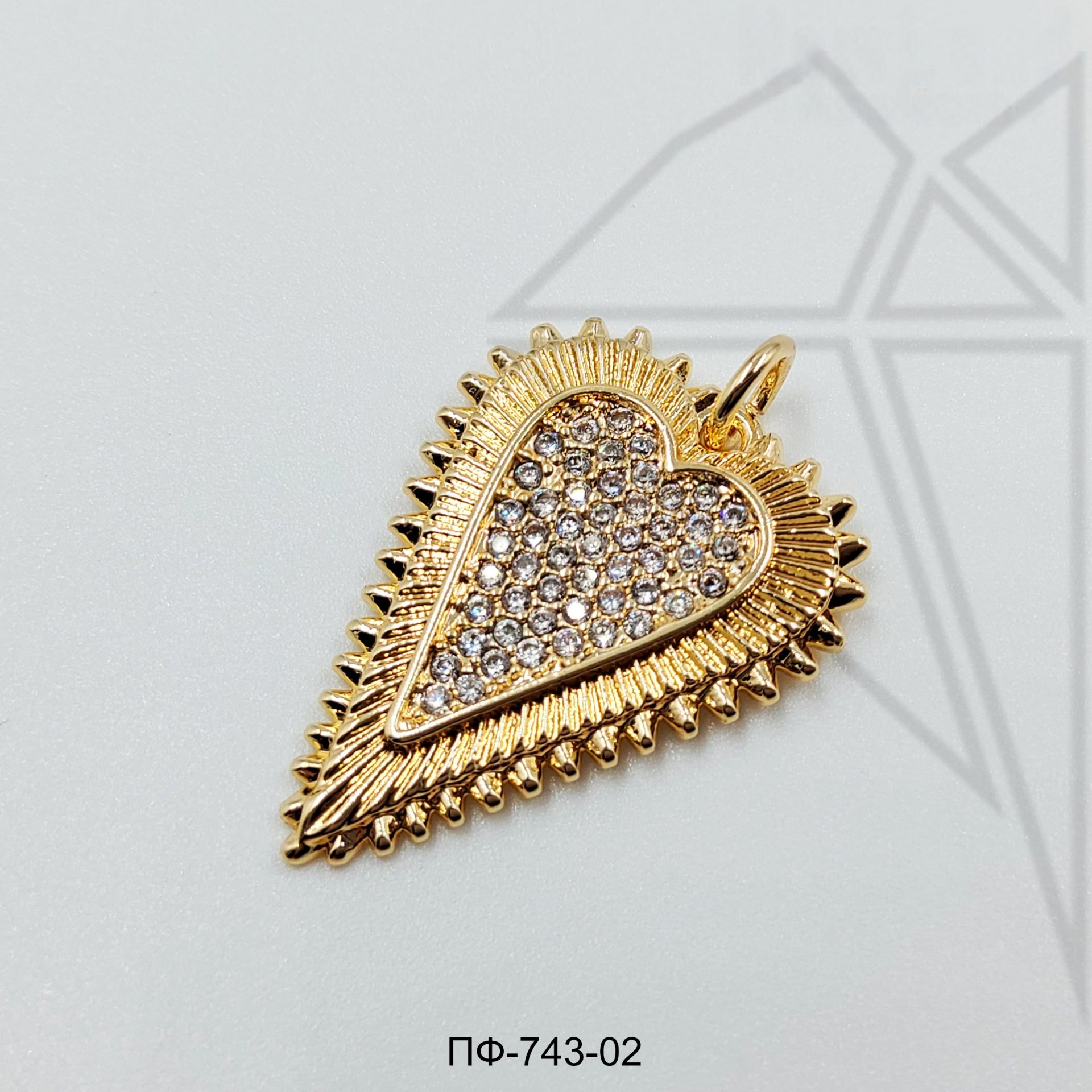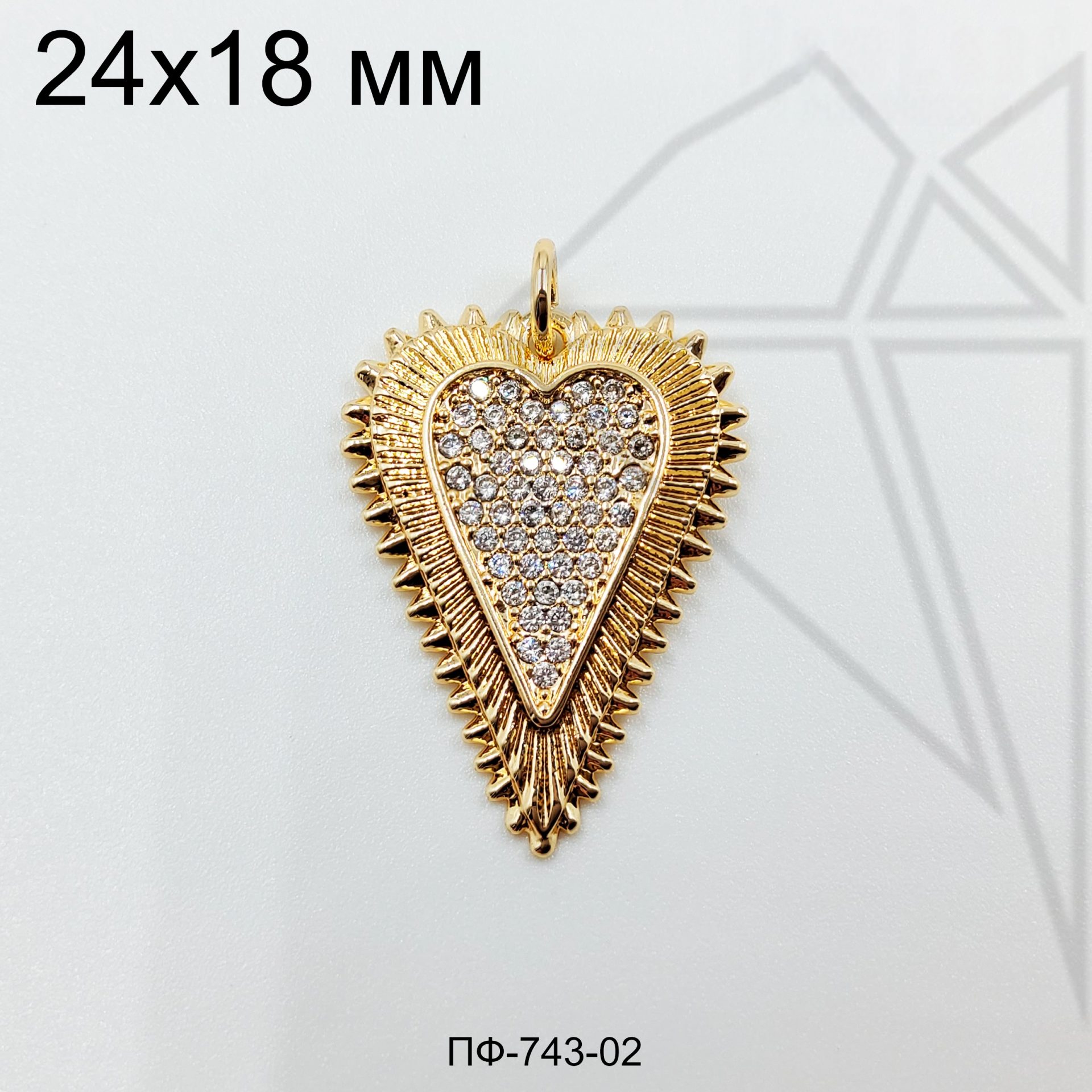 Подвеска сердце с белыми фианитами класса люкс с позолоченным покрытием (по латуни)