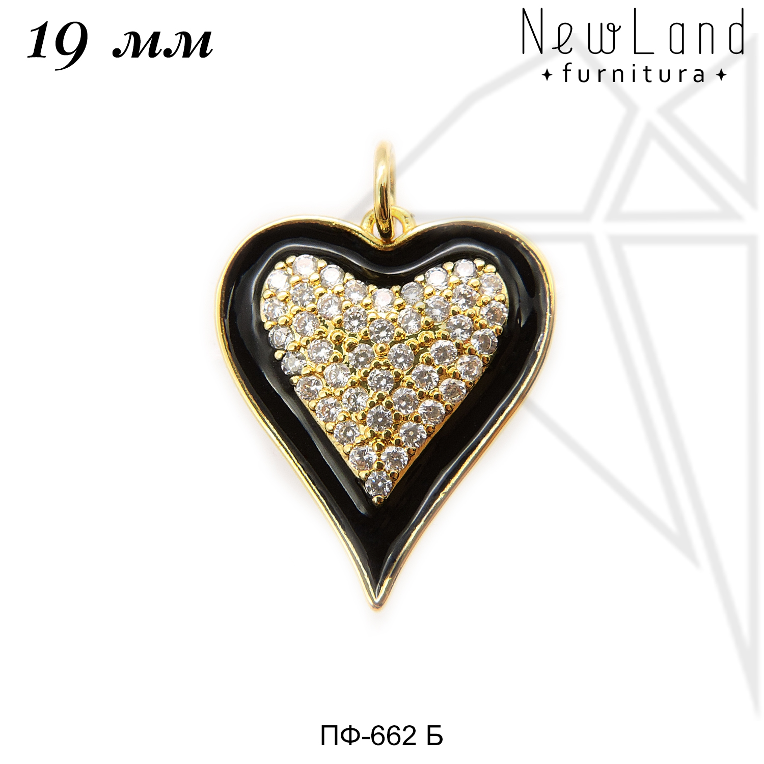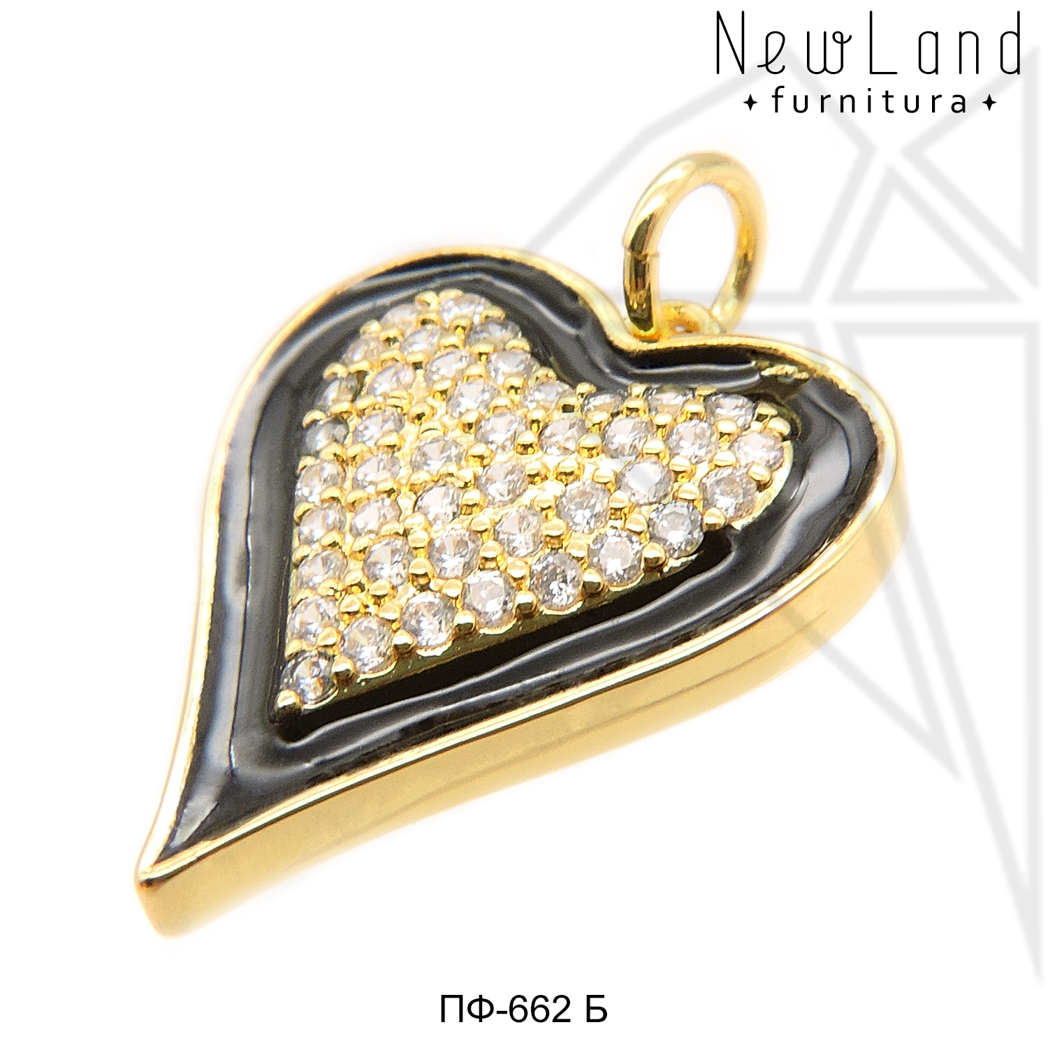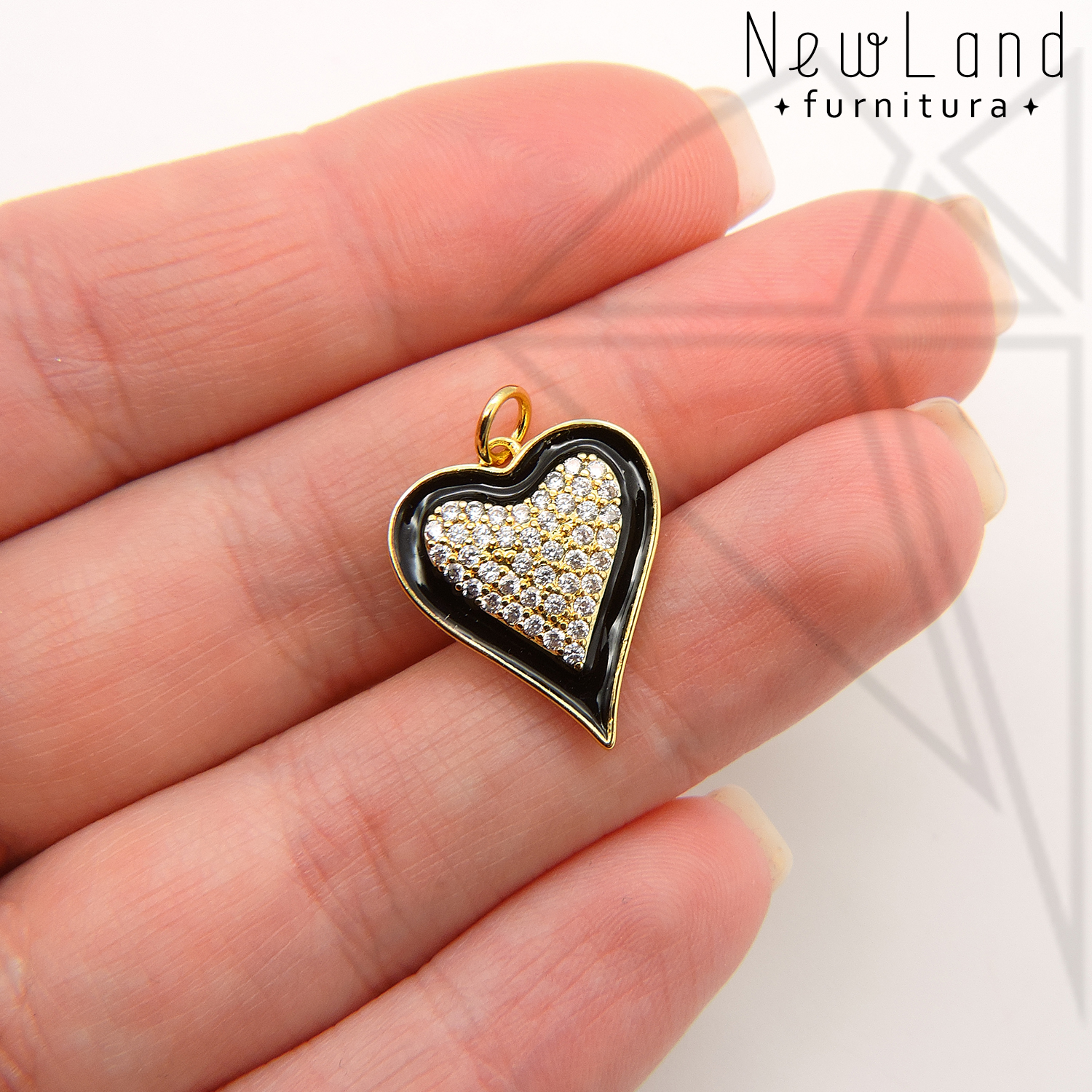 Подвеска сердце с черной эмалью класса люкс с позолоченным покрытием (по латуни).