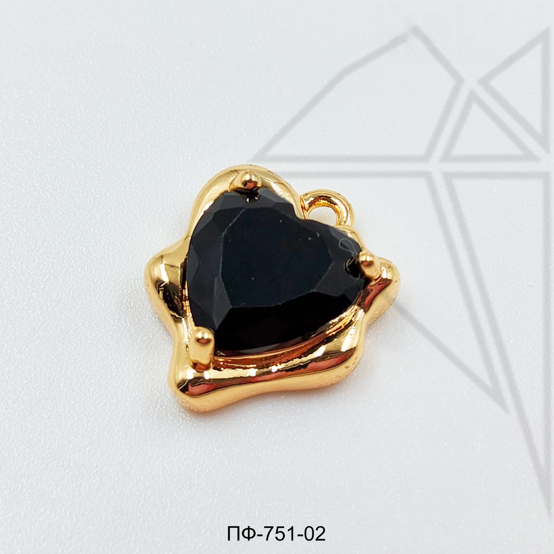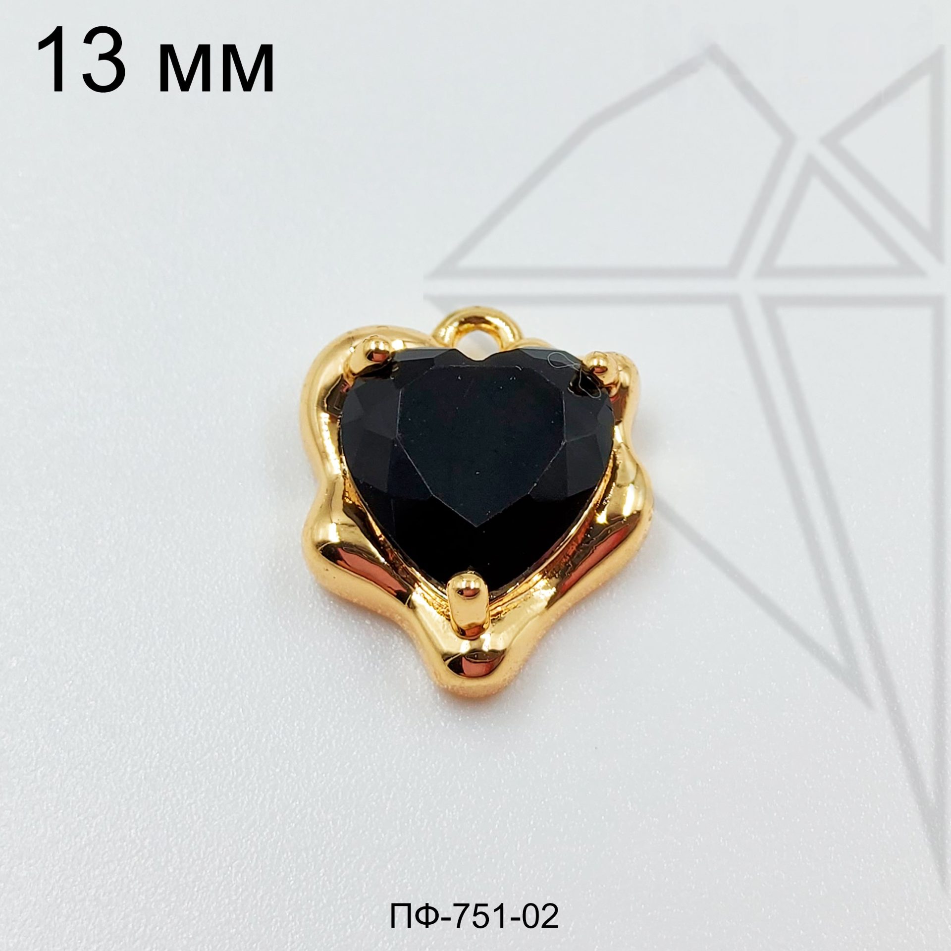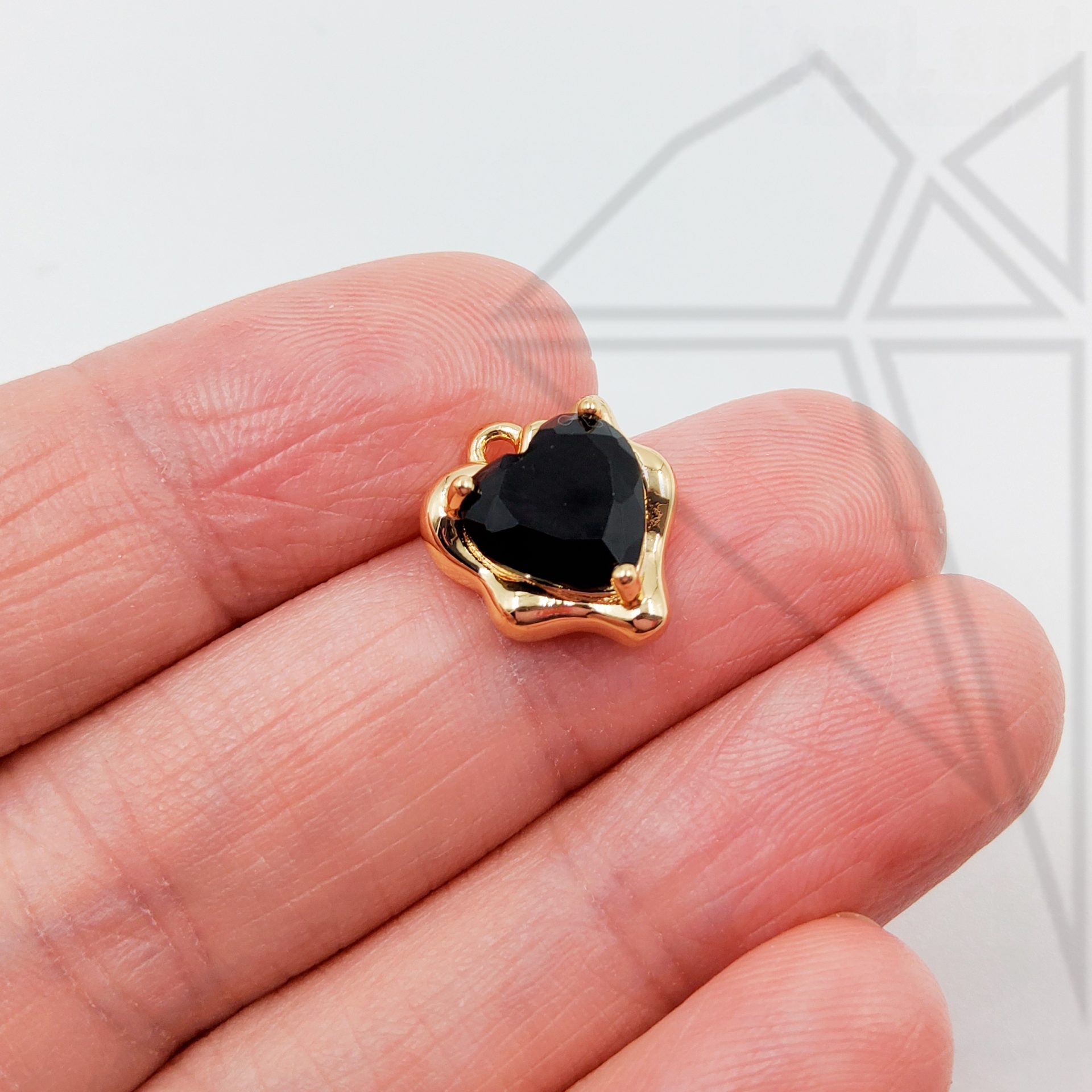 Подвеска сердце с черным фианитом класса люкс с позолоченным покрытием (по латуни)