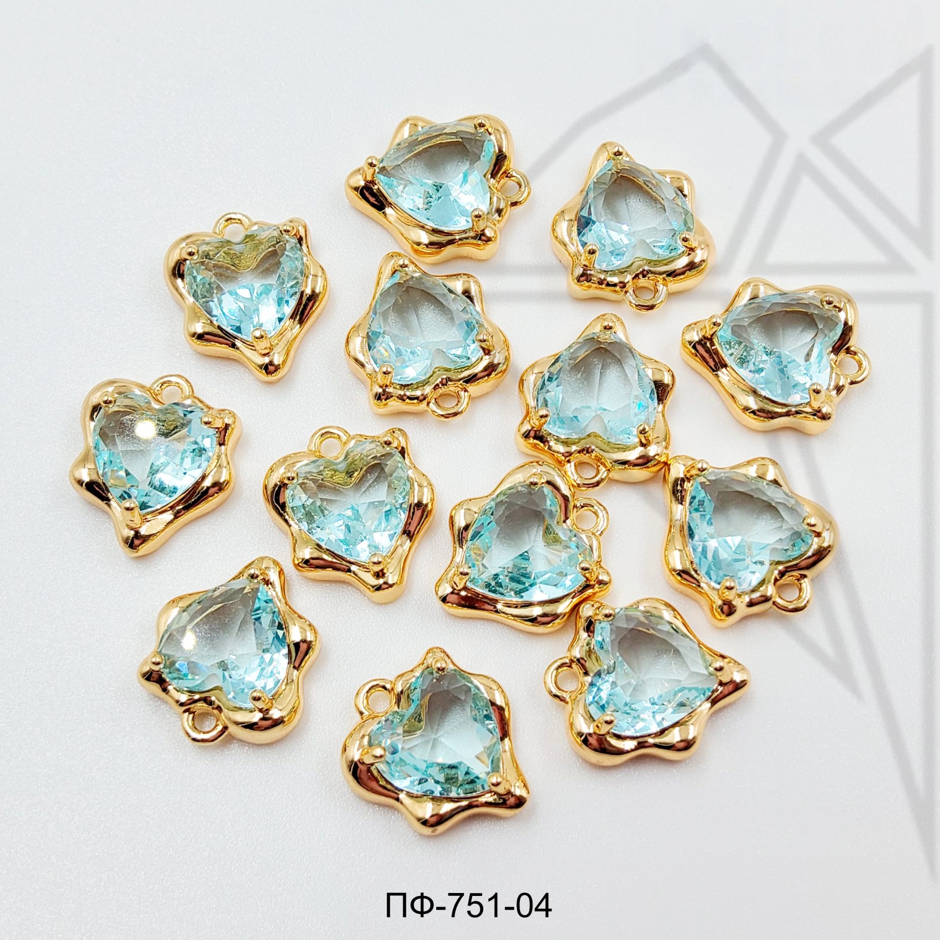 Подвеска сердце с голубым фианитом класса люкс с позолоченным покрытием (по латуни)