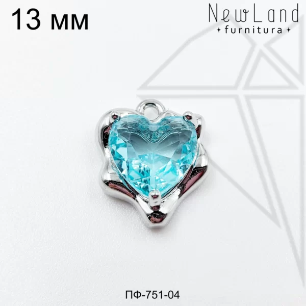 Подвеска сердце с голубым фианитом класса люкс с родированным покрытием (по латуни)