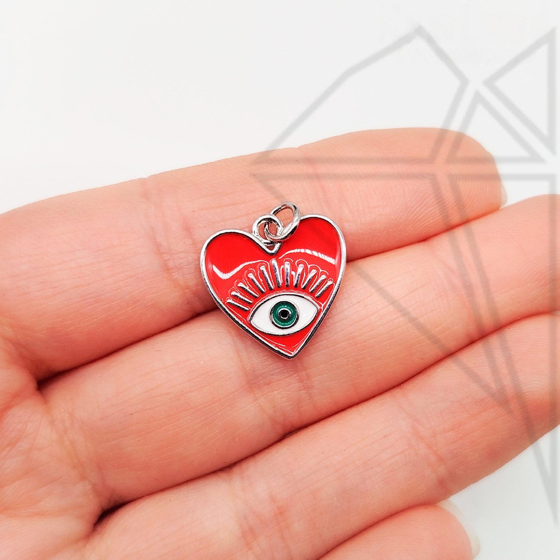 Подвеска сердце с красной эмалью класса люкс с родированным покрытием (по латуни).