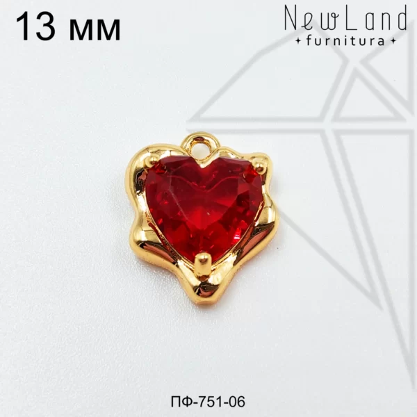 Подвеска сердце с красным фианитом класса люкс с позолоченным покрытием (по латуни)