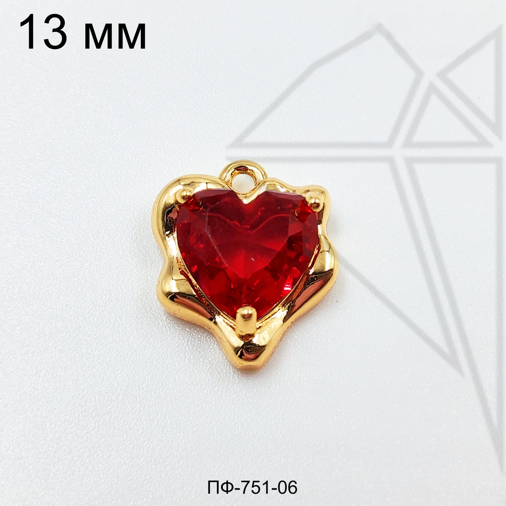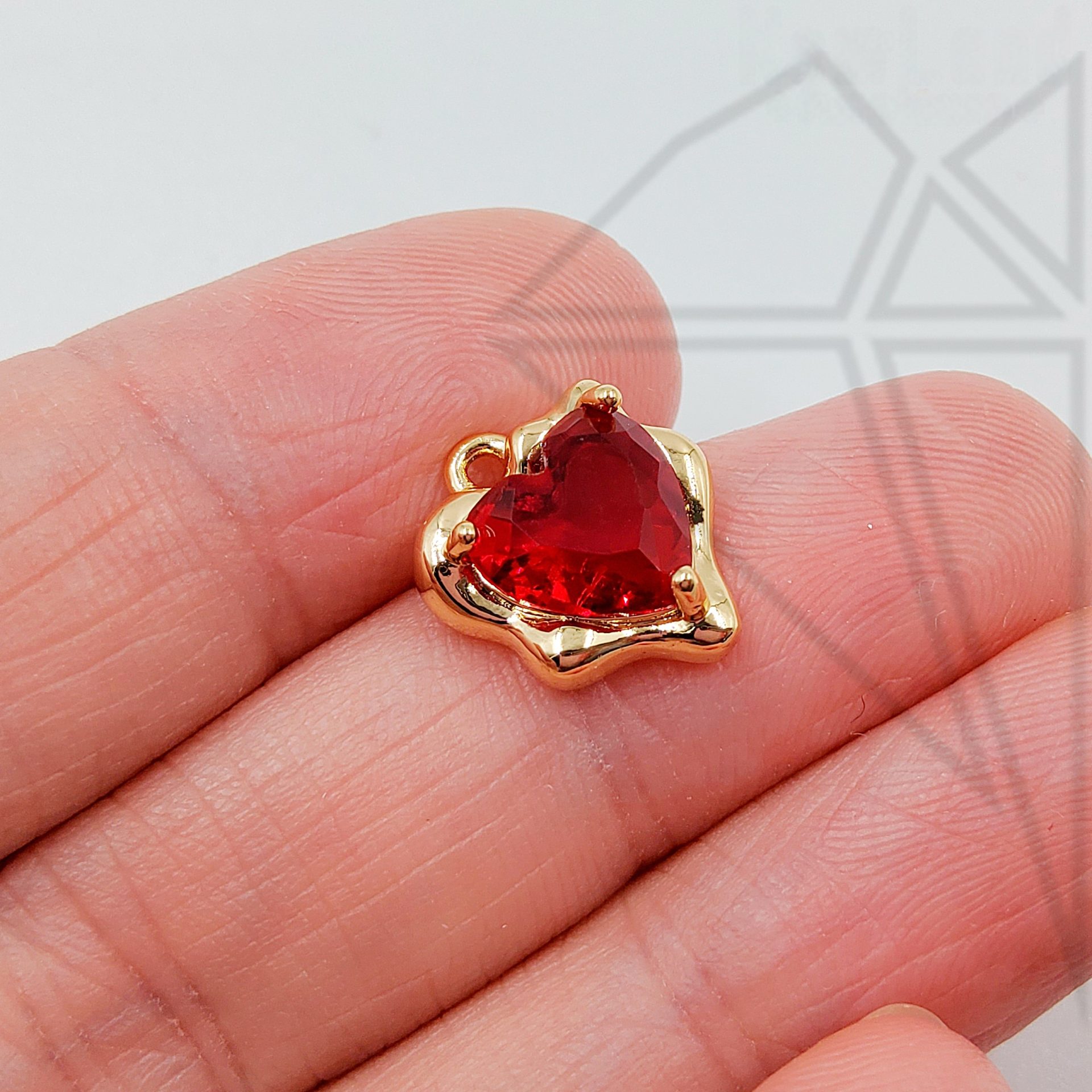 Подвеска сердце с красным фианитом класса люкс с позолоченным покрытием (по латуни)