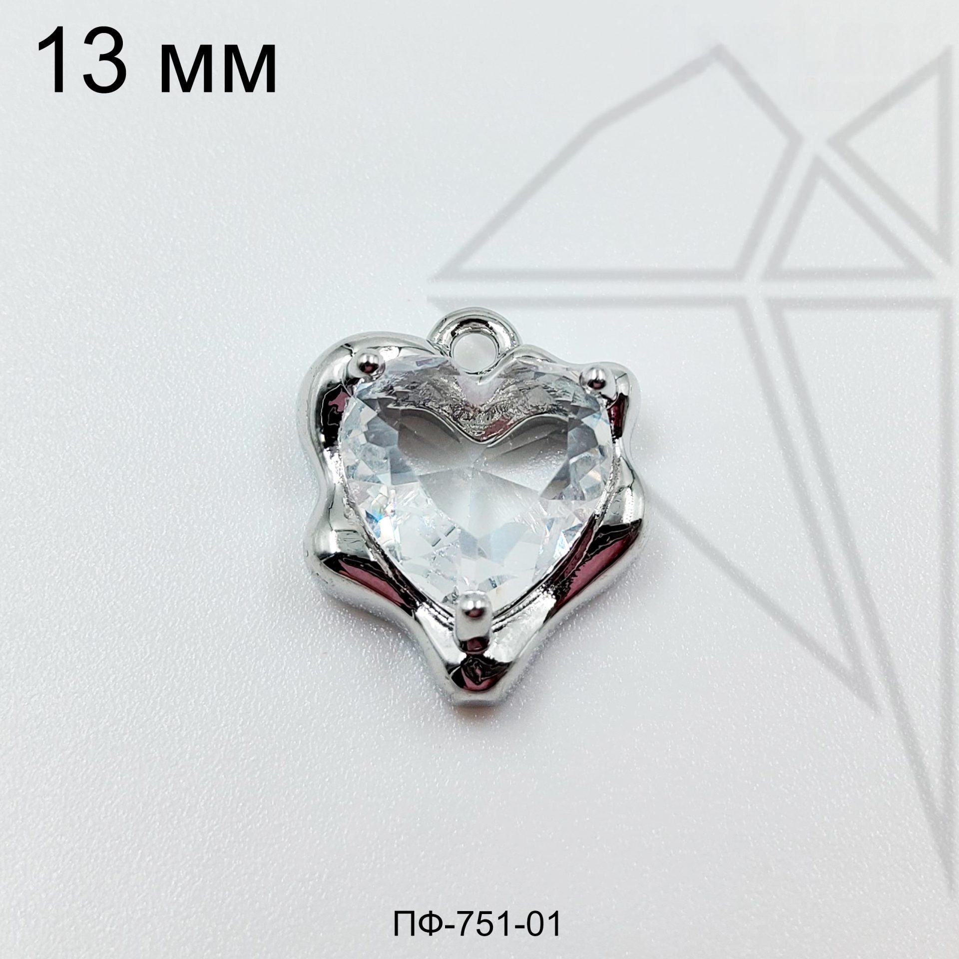Подвеска сердце с прозрачным фианитом класса люкс с родированным покрытием (по латуни)