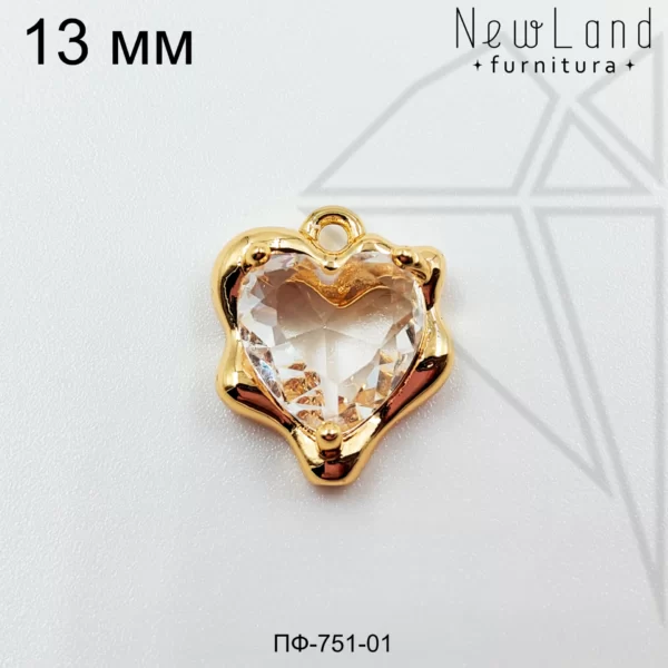 Подвеска сердце с прозрачным фианитом класса люкс с позолоченным покрытием (по латуни)