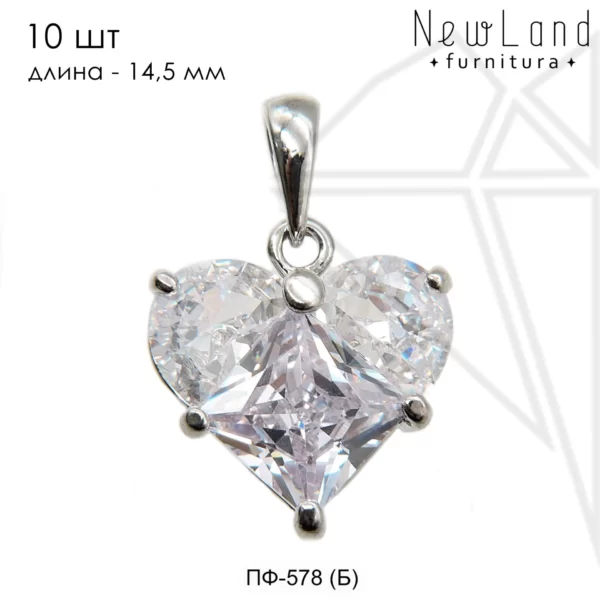 Подвески в форме сердечек класса люкс с родированным покрытием (по латуни).