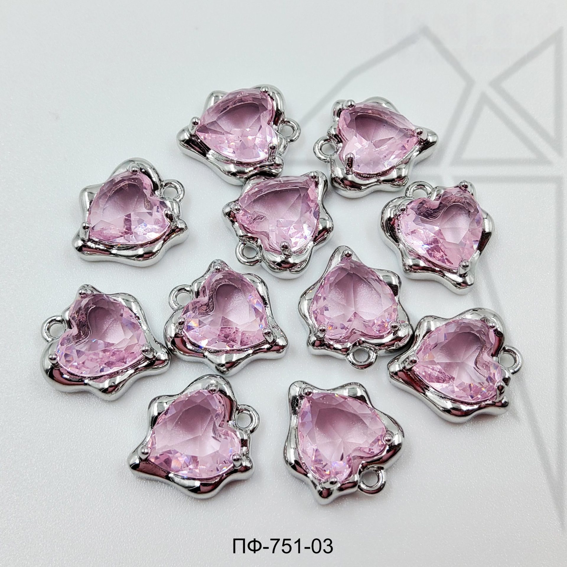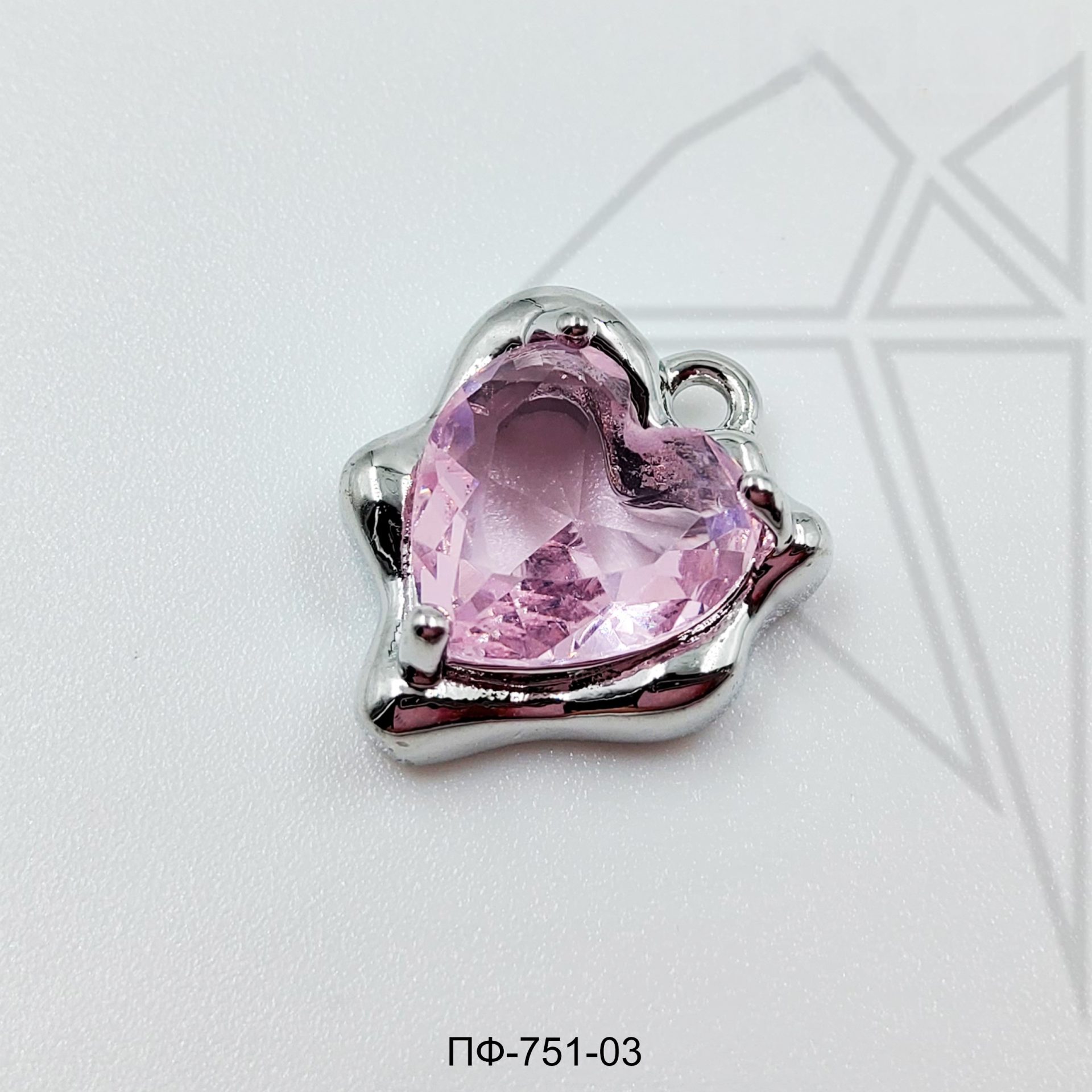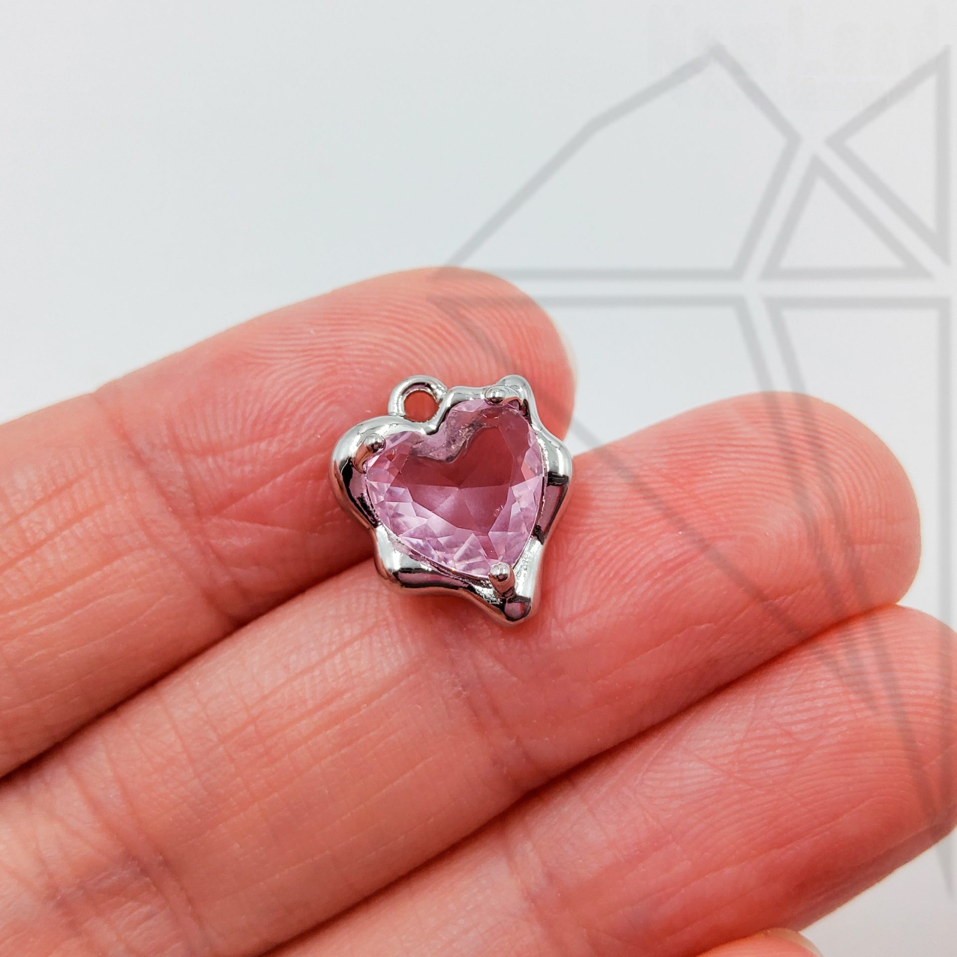 Подвеска сердце с розовым фианитом класса люкс с родированным покрытием (по латуни)