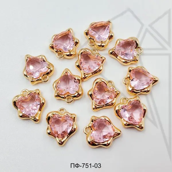 Подвеска сердце с розовым фианитом класса люкс с позолоченным покрытием (по латуни)