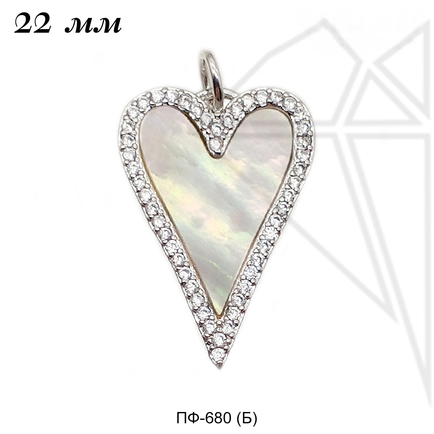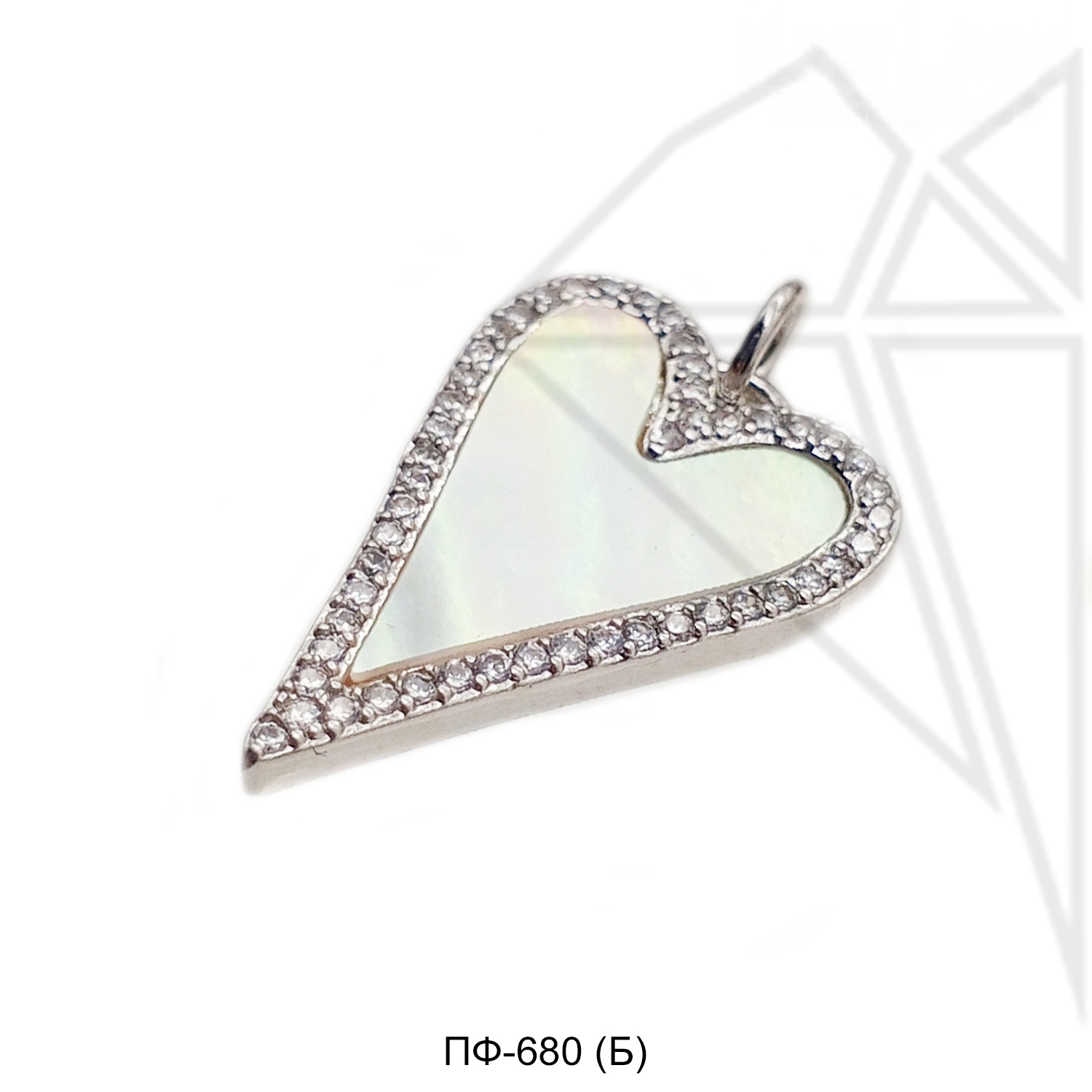 Подвески в форме сердечка класса люкс с родированным покрытием (по латуни).