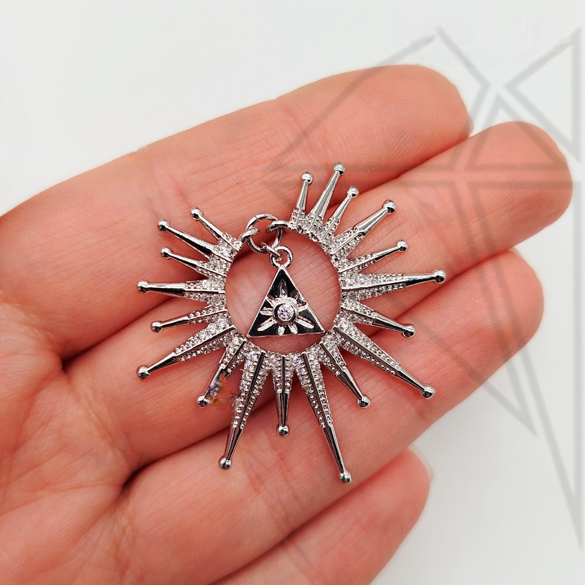 Подвеска солнце фианитами класса люкс с родированным покрытием (по латуни)
