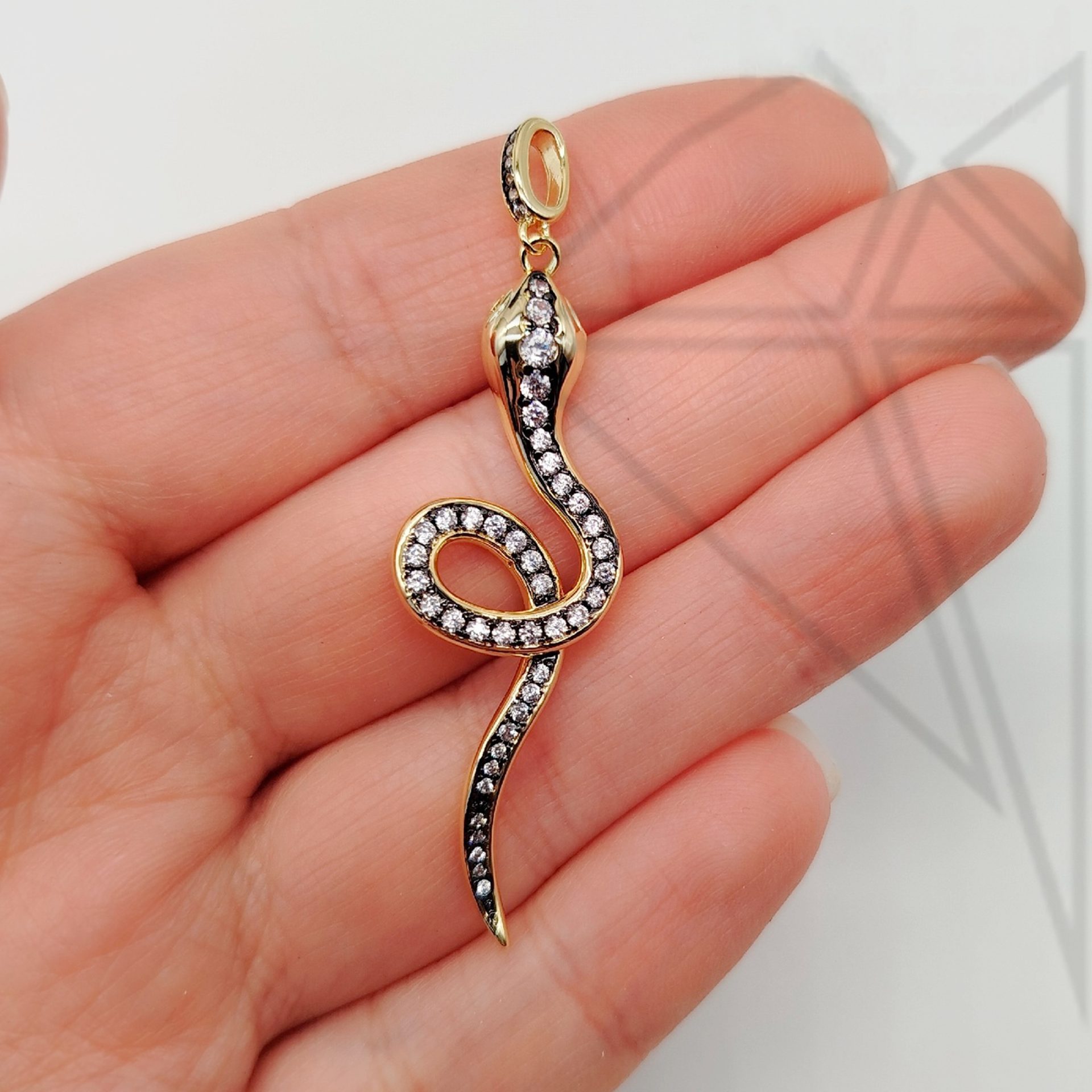 Подвеска змея с белыми фианитами класса люкс с позолоченным покрытием (по латуни)