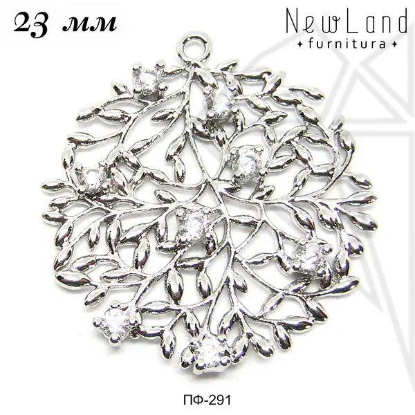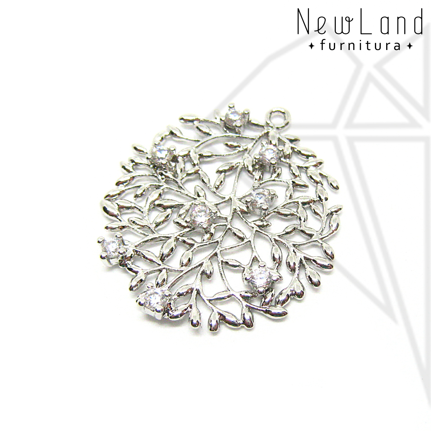 Подвеска круглая с растительным рисунком с родированным покрытием (по латуни).