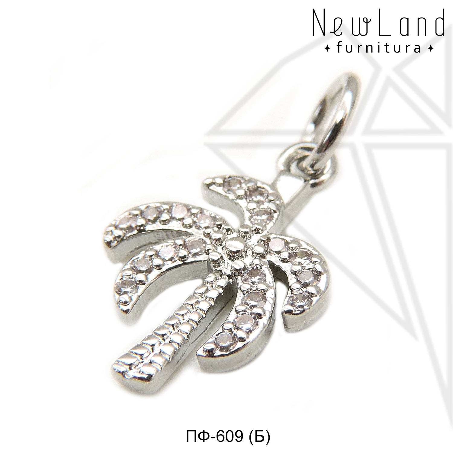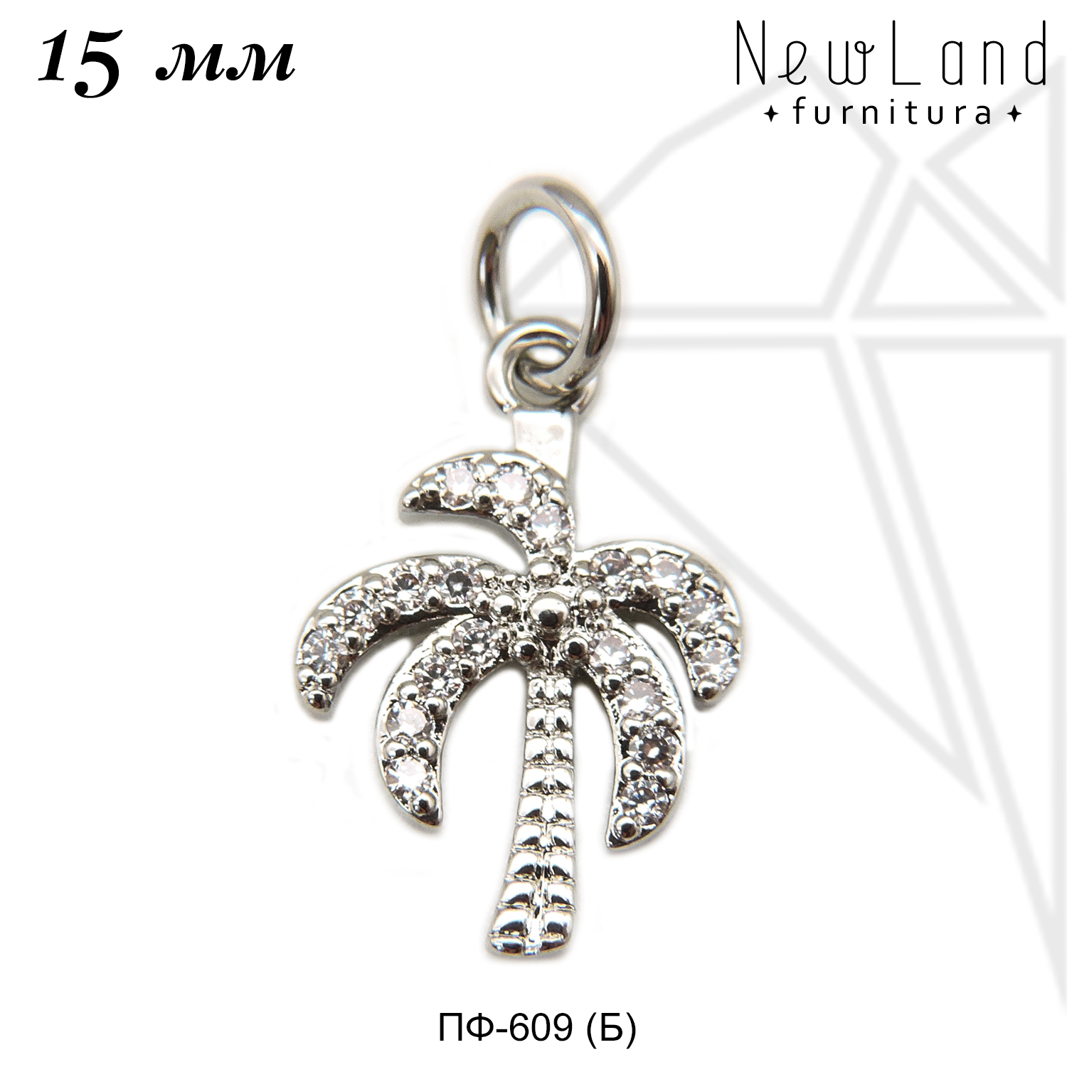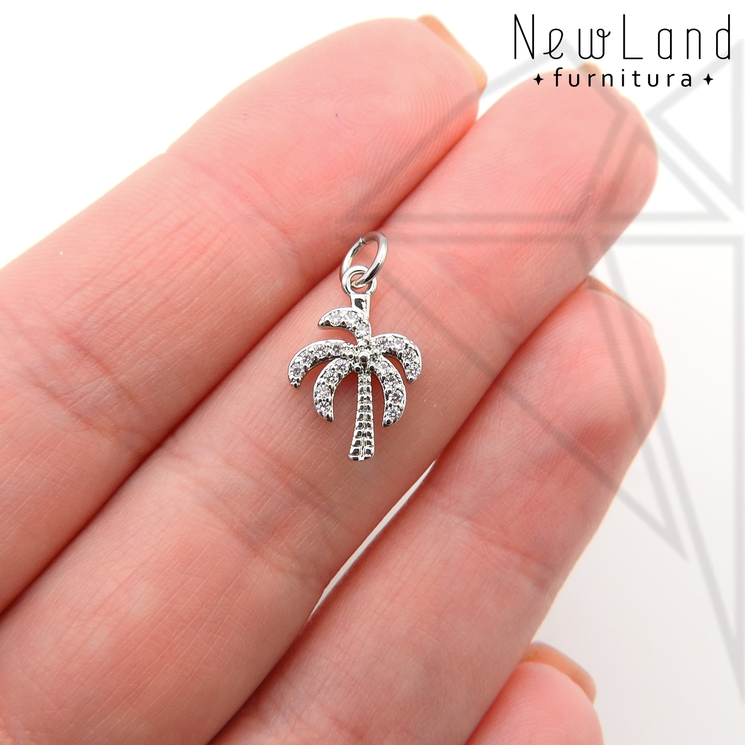 Подвеска в форме пальмы с прозрачными фианитами класса люкс с родированным покрытием (по латуни).