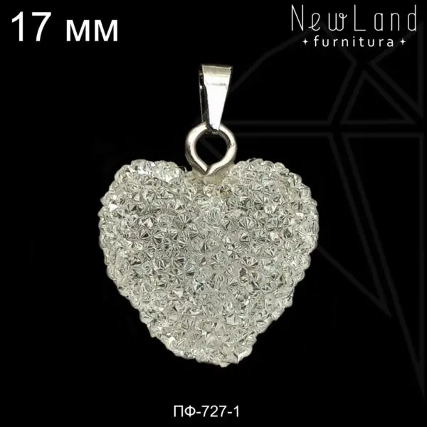 Подвеска в форме белого сердца с петелькой и бейлом серебристого цвета.