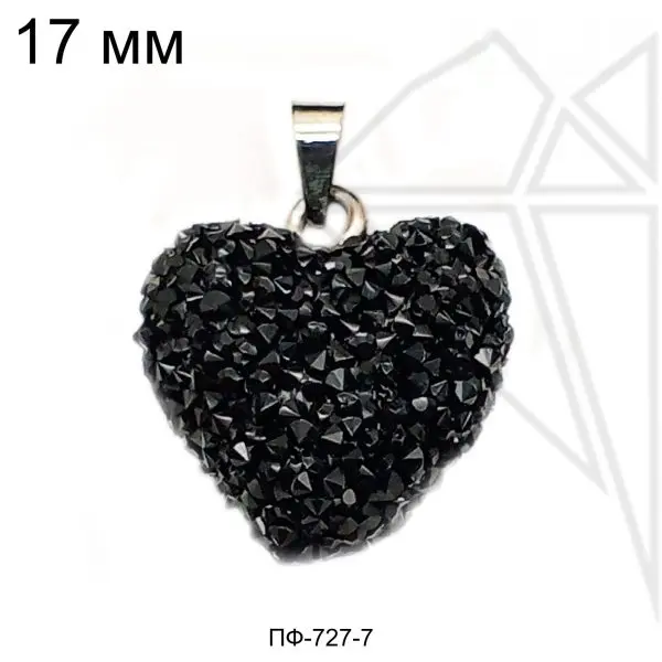 Подвеска в форме черного сердца с петелькой и бейлом серебристого цвета.