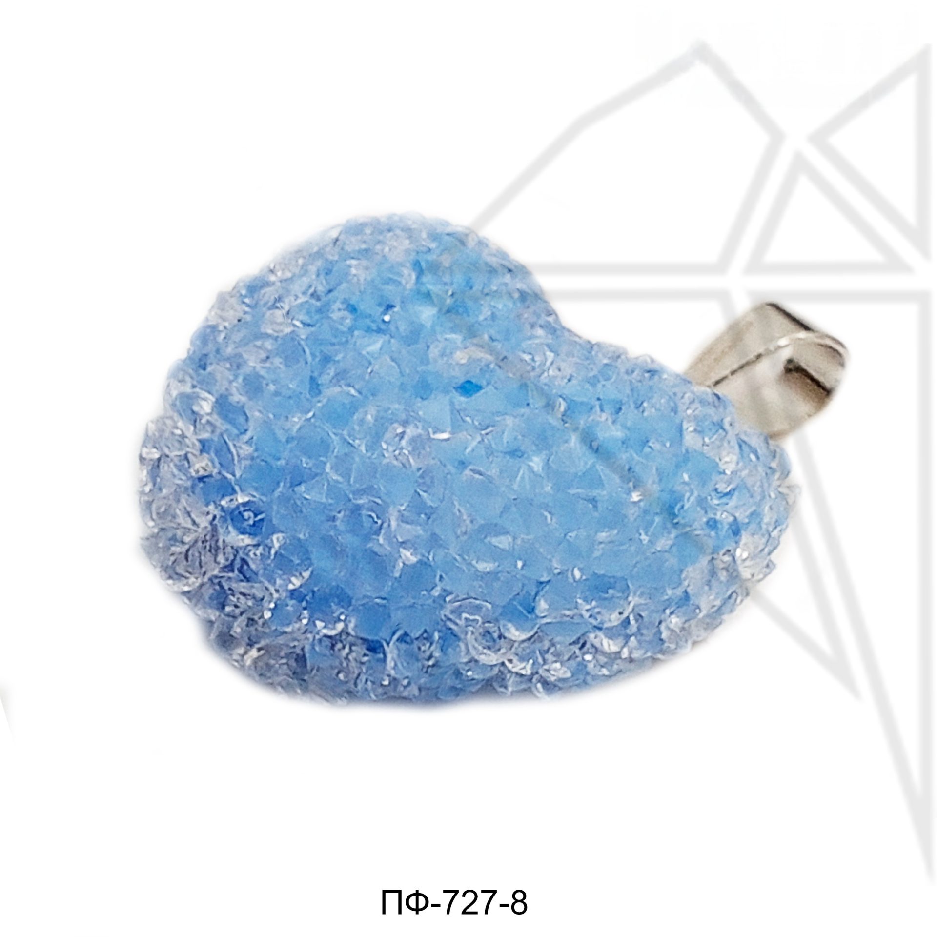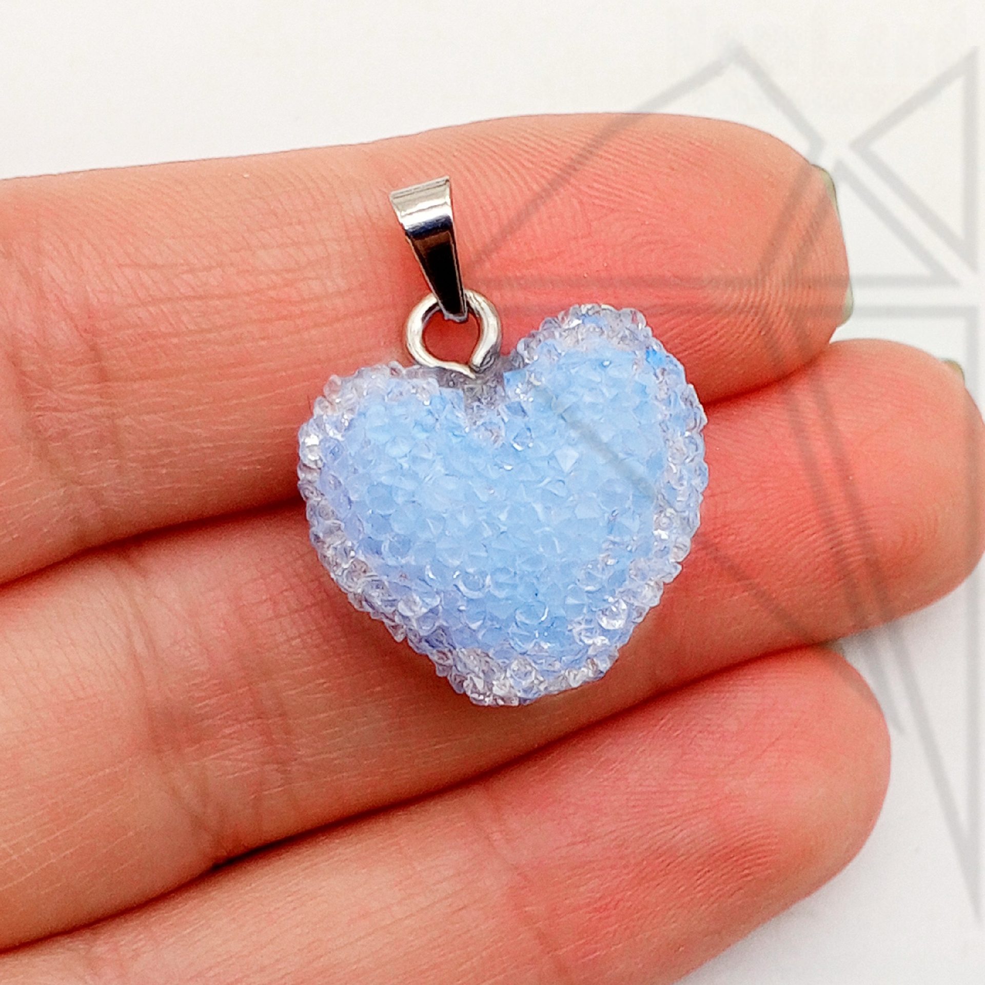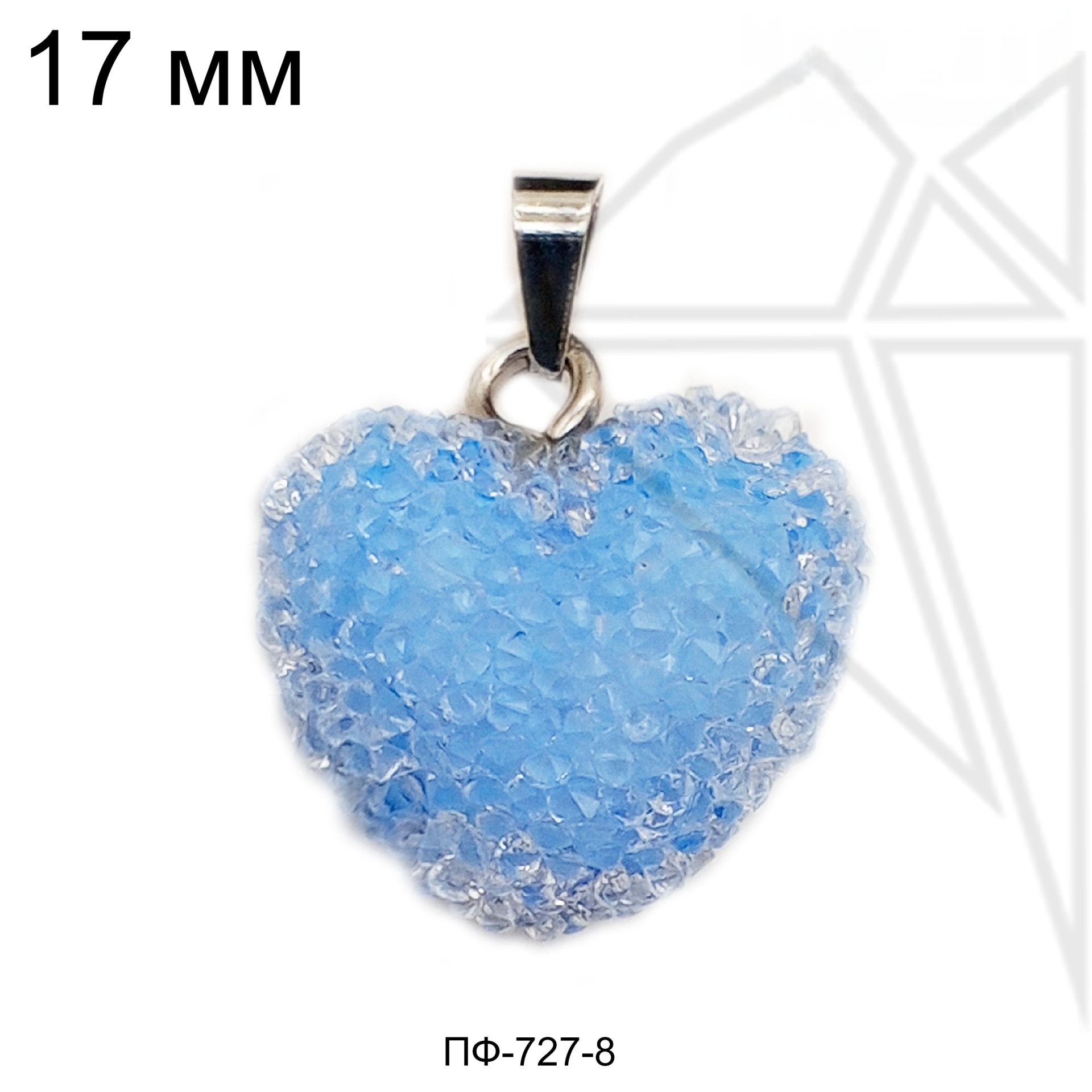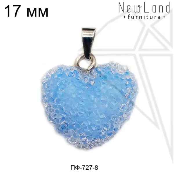 Подвеска в форме голубого (василькового) сердца с петелькой и бейлом серебристого цвета.