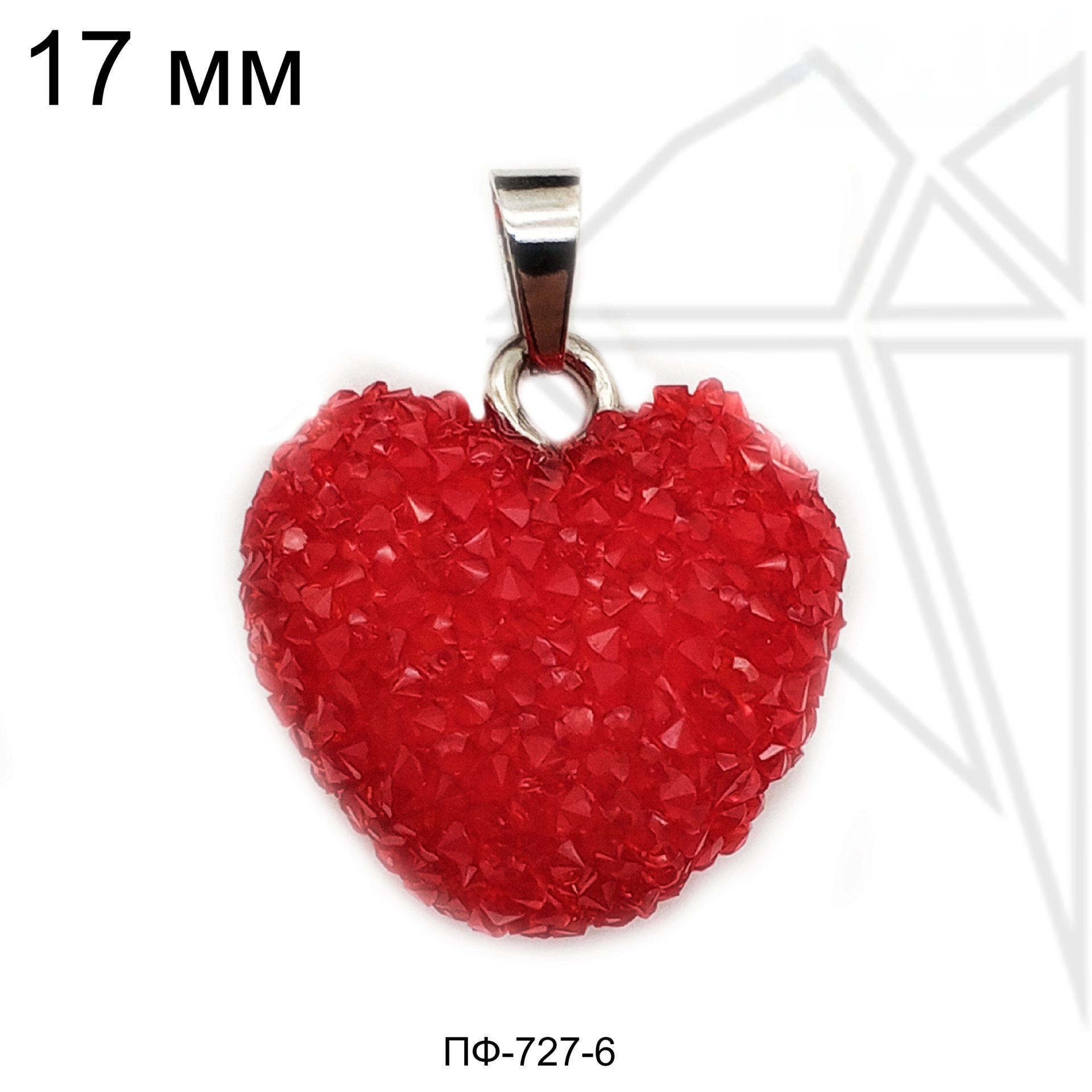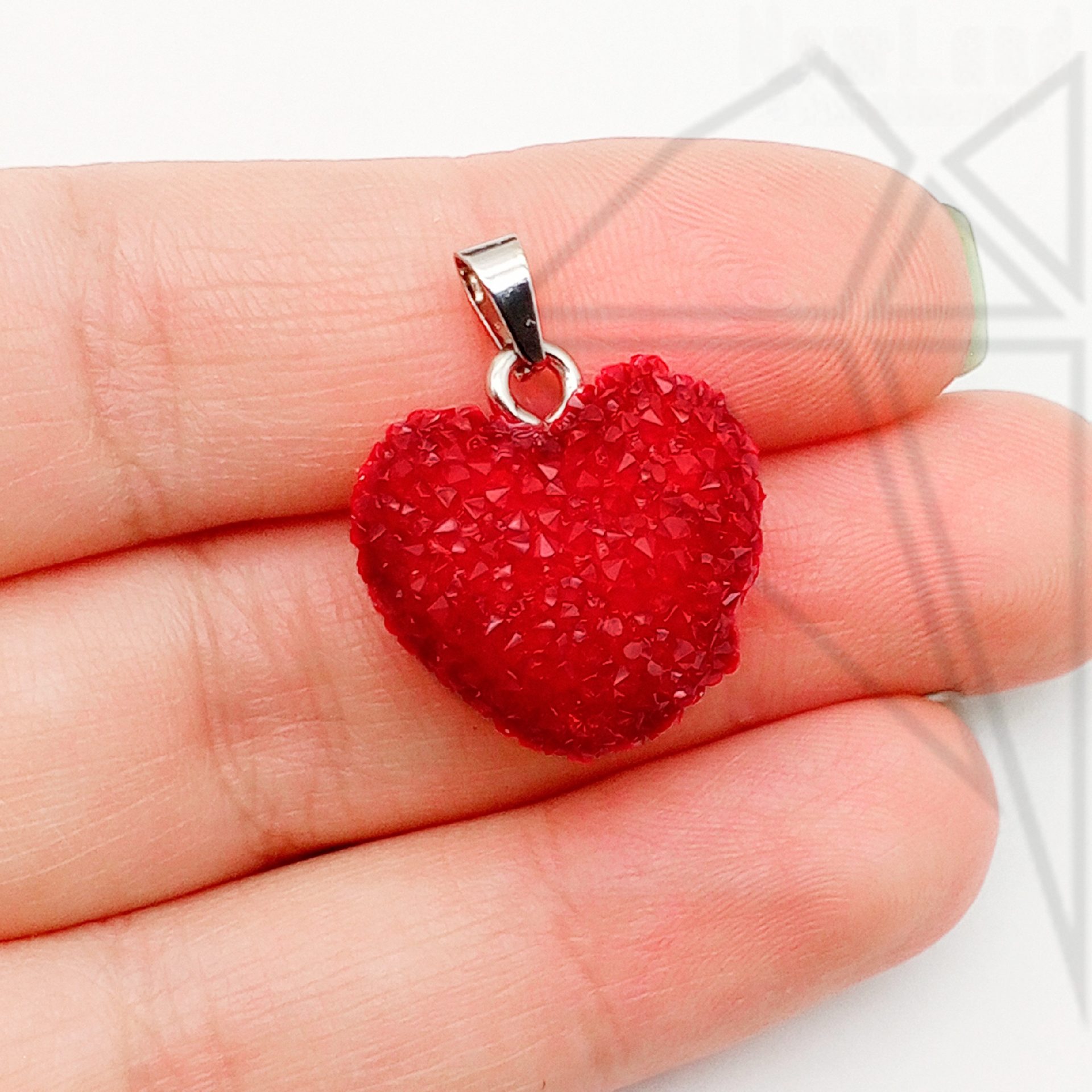 Подвеска в форме красного сердца с петелькой и бейлом серебристого цвета.