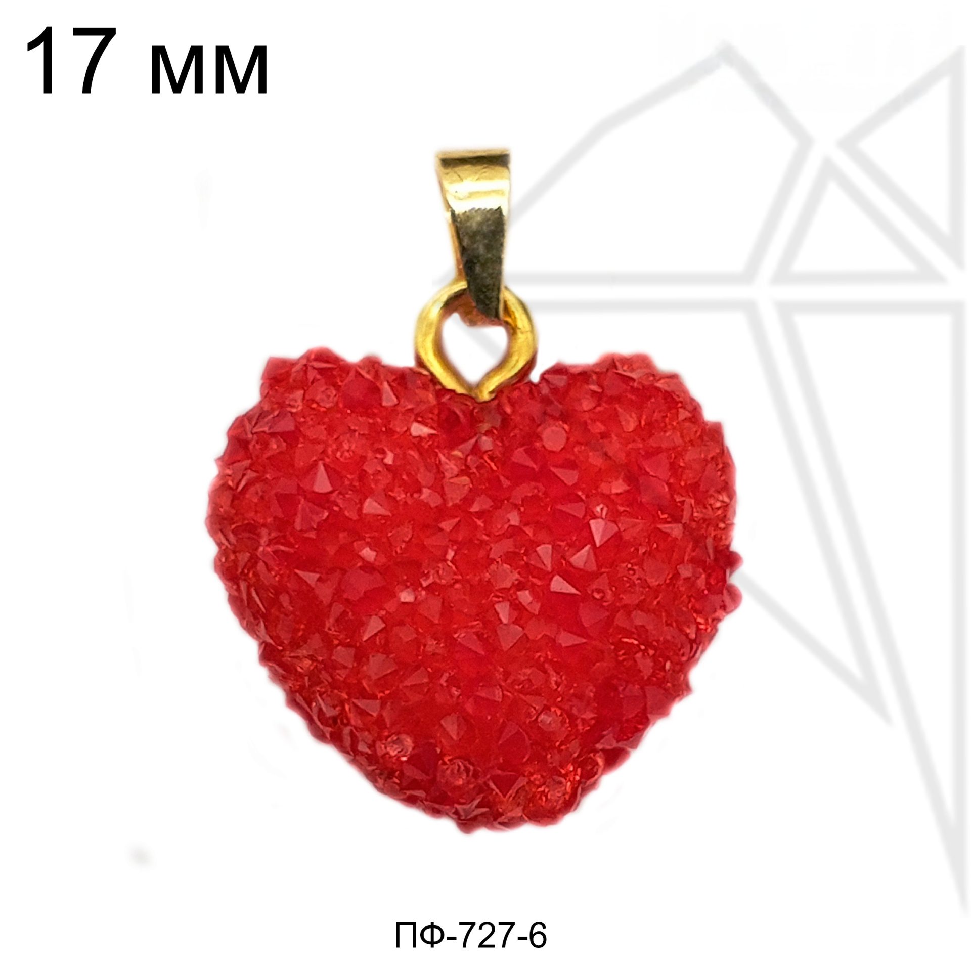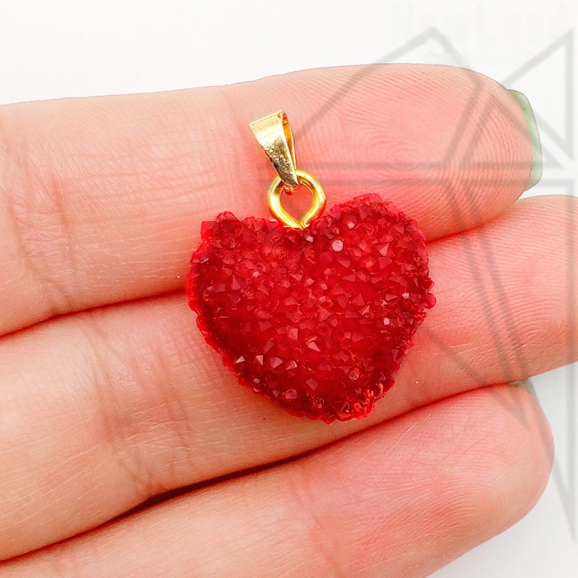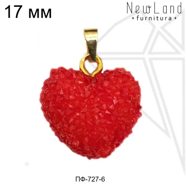 Подвеска в форме красного сердца с петелькой и бейлом золотого цвета.