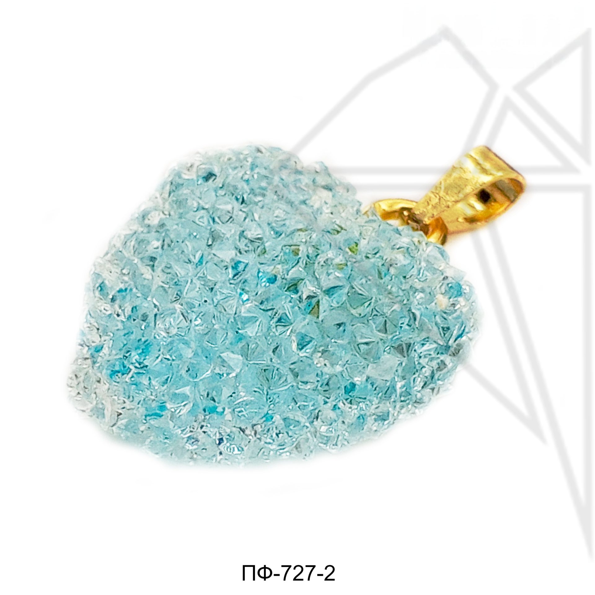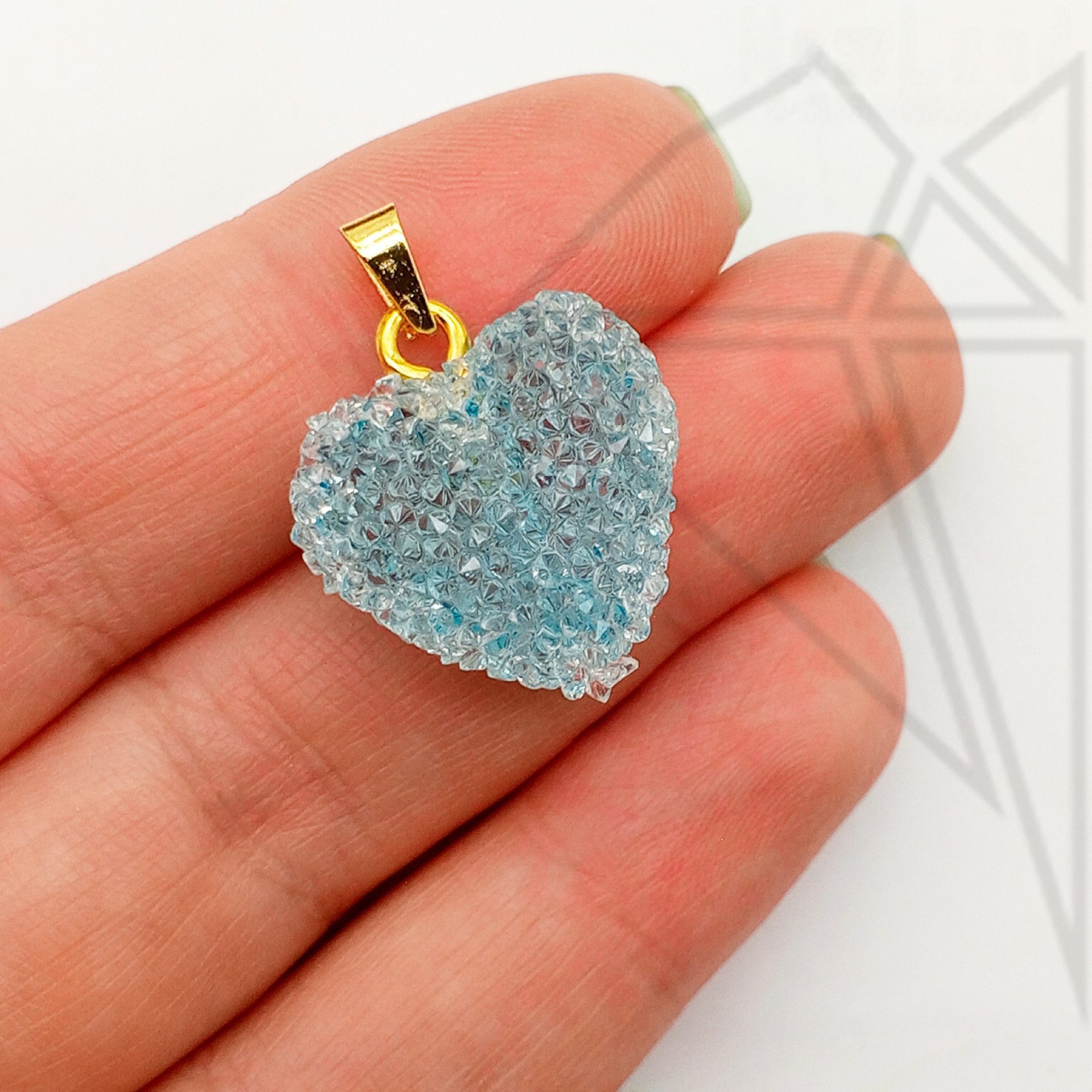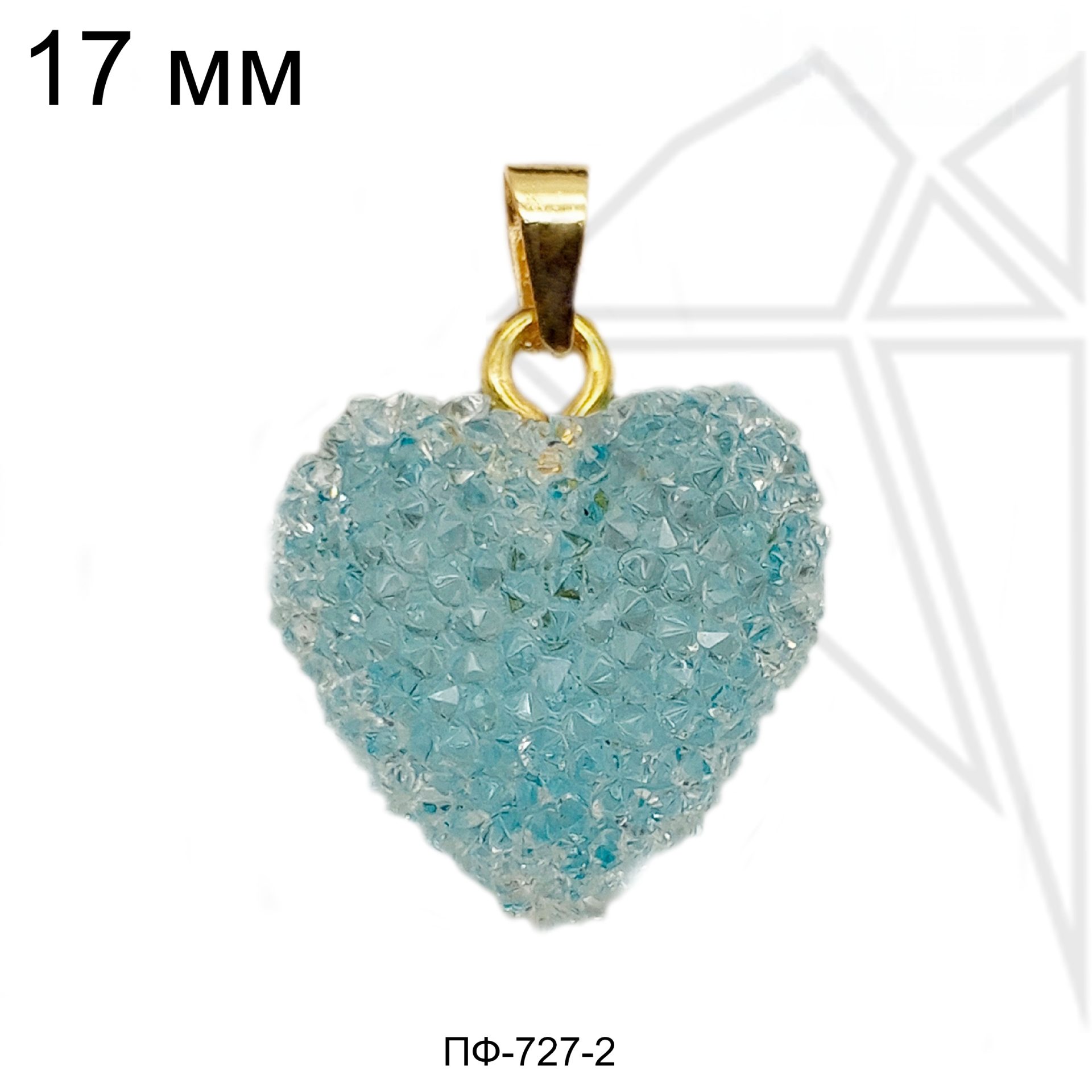 Подвеска в форме сердца светло-голубого (бирюзового, мятного) цвета с петелькой и бейлом золотого цвета.