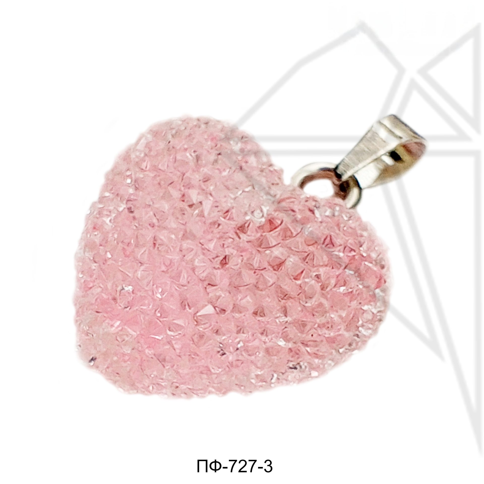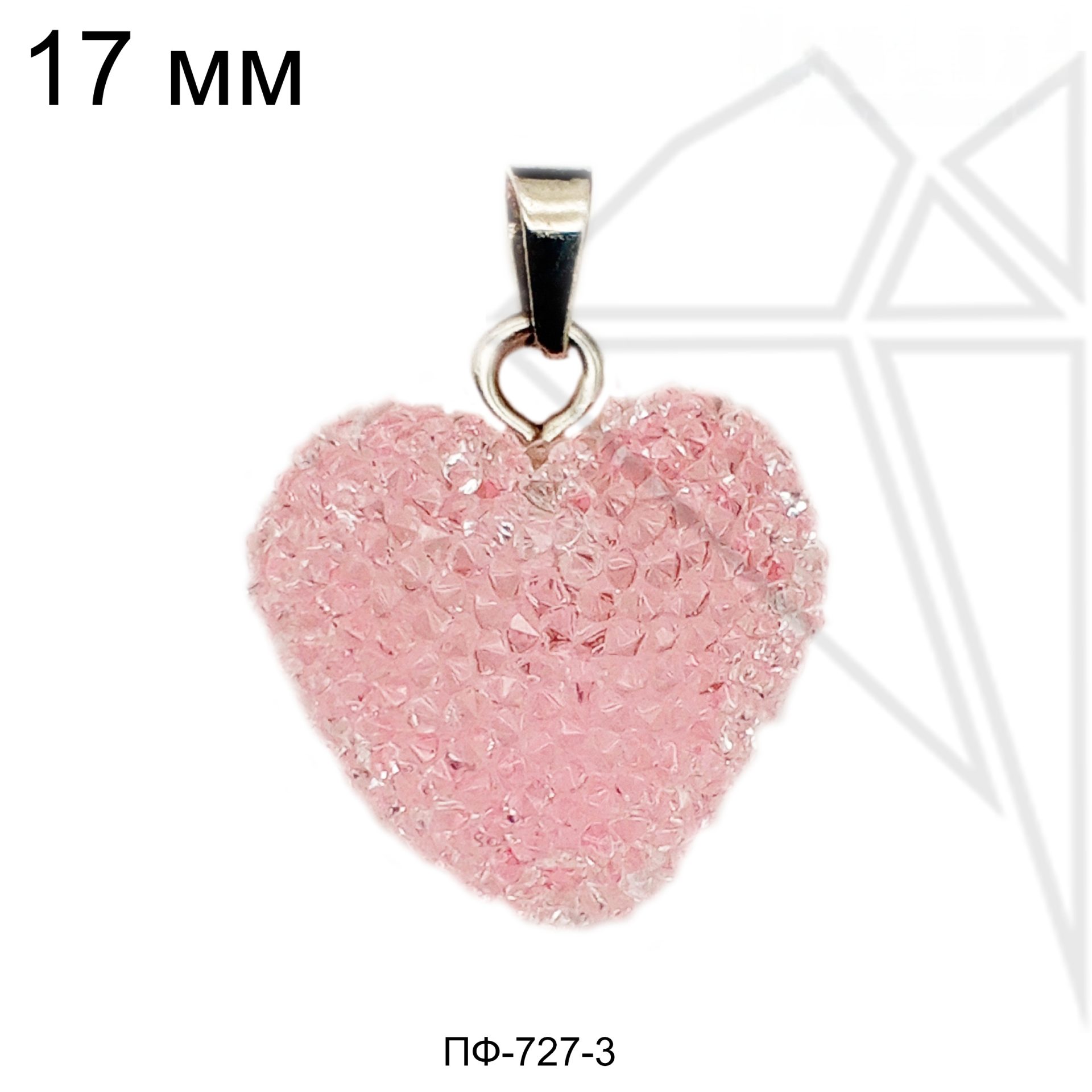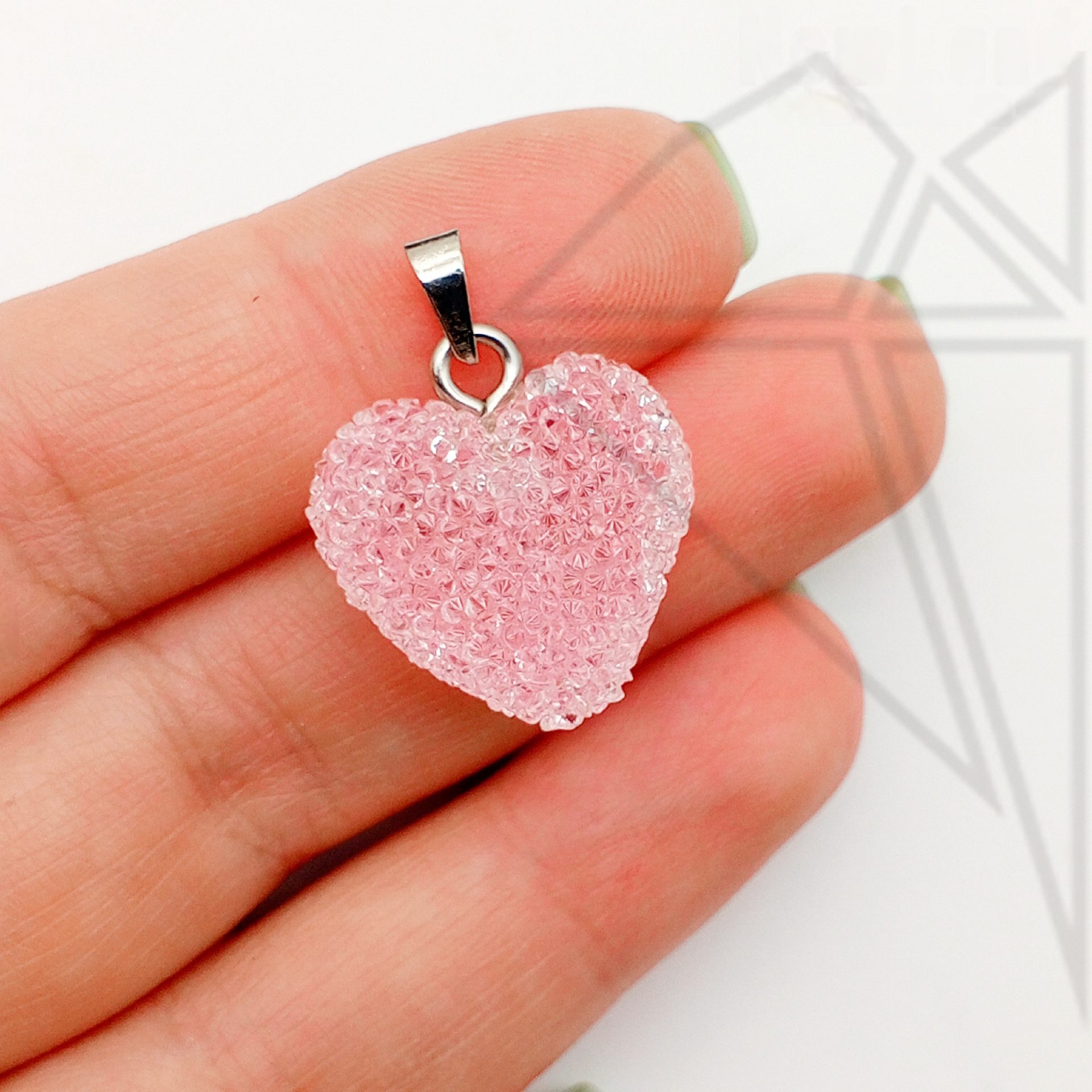 Подвеска в форме светло-розового сердца с петелькой и бейлом серебристого цвета.