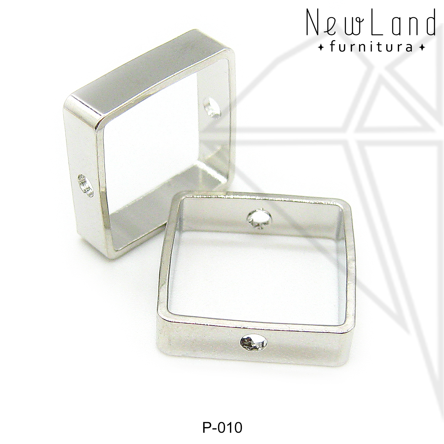 Рамка квадратной формы с двумя дырочками для крепления с родированным покрытием (по латуни).
