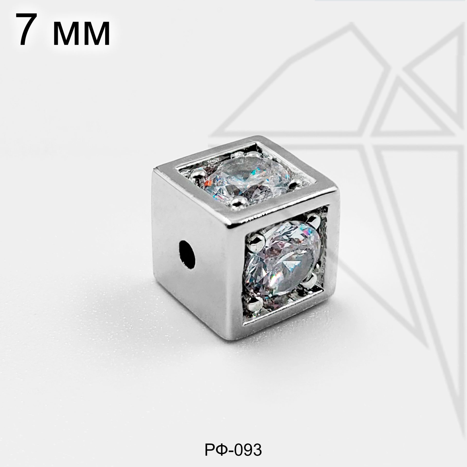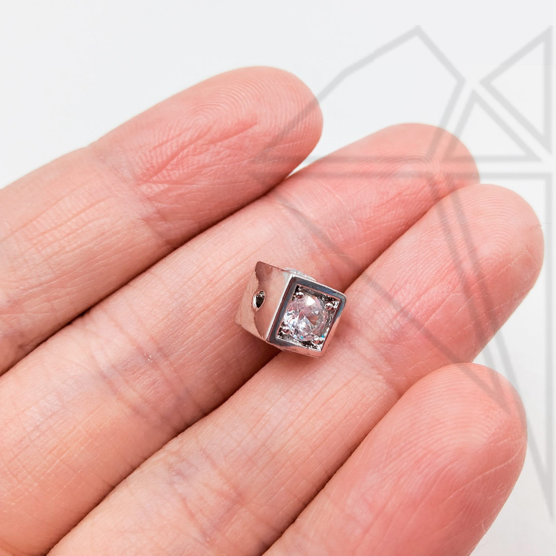 Разделительные бусины в форме кубика класса люкс с родированным покрытием (по латуни).