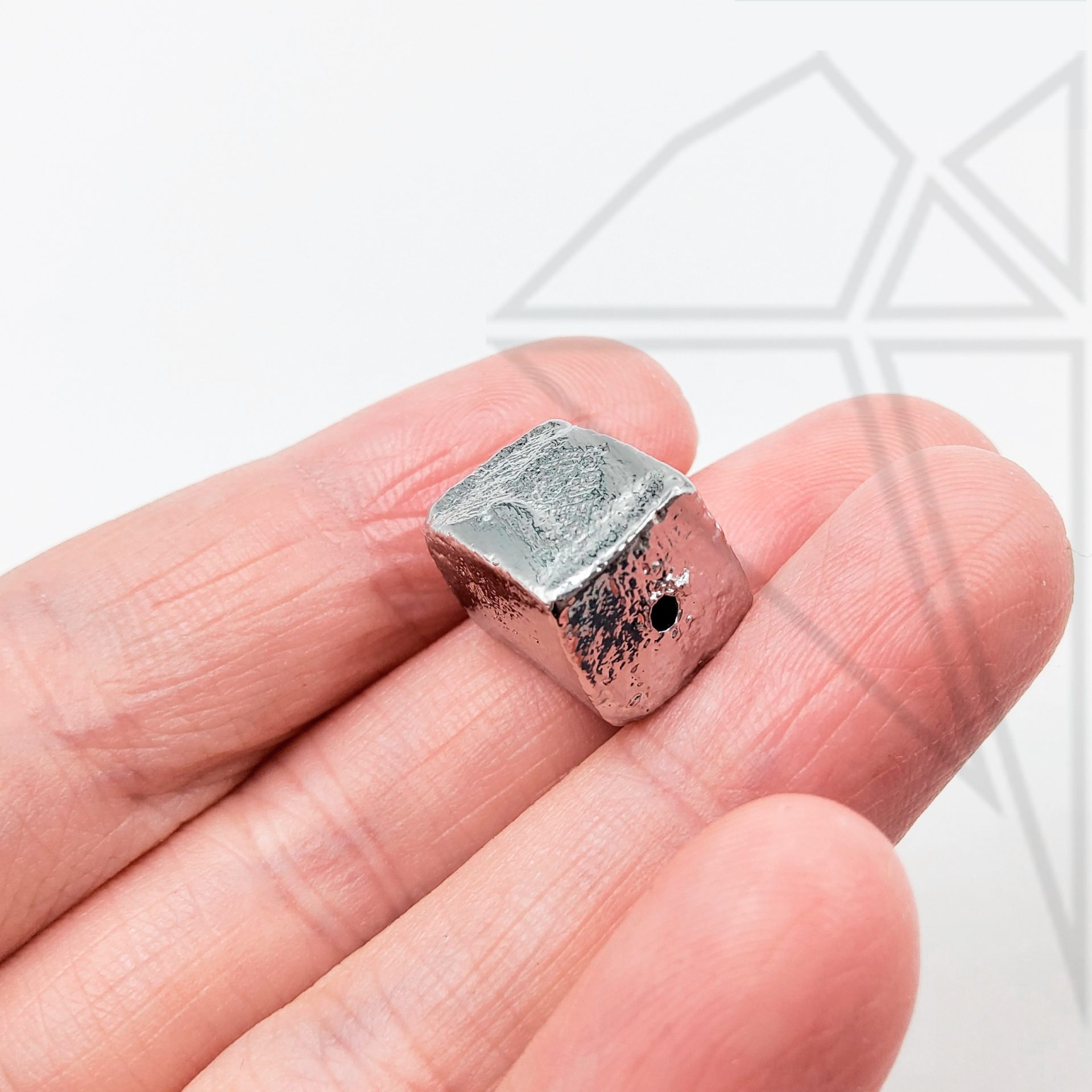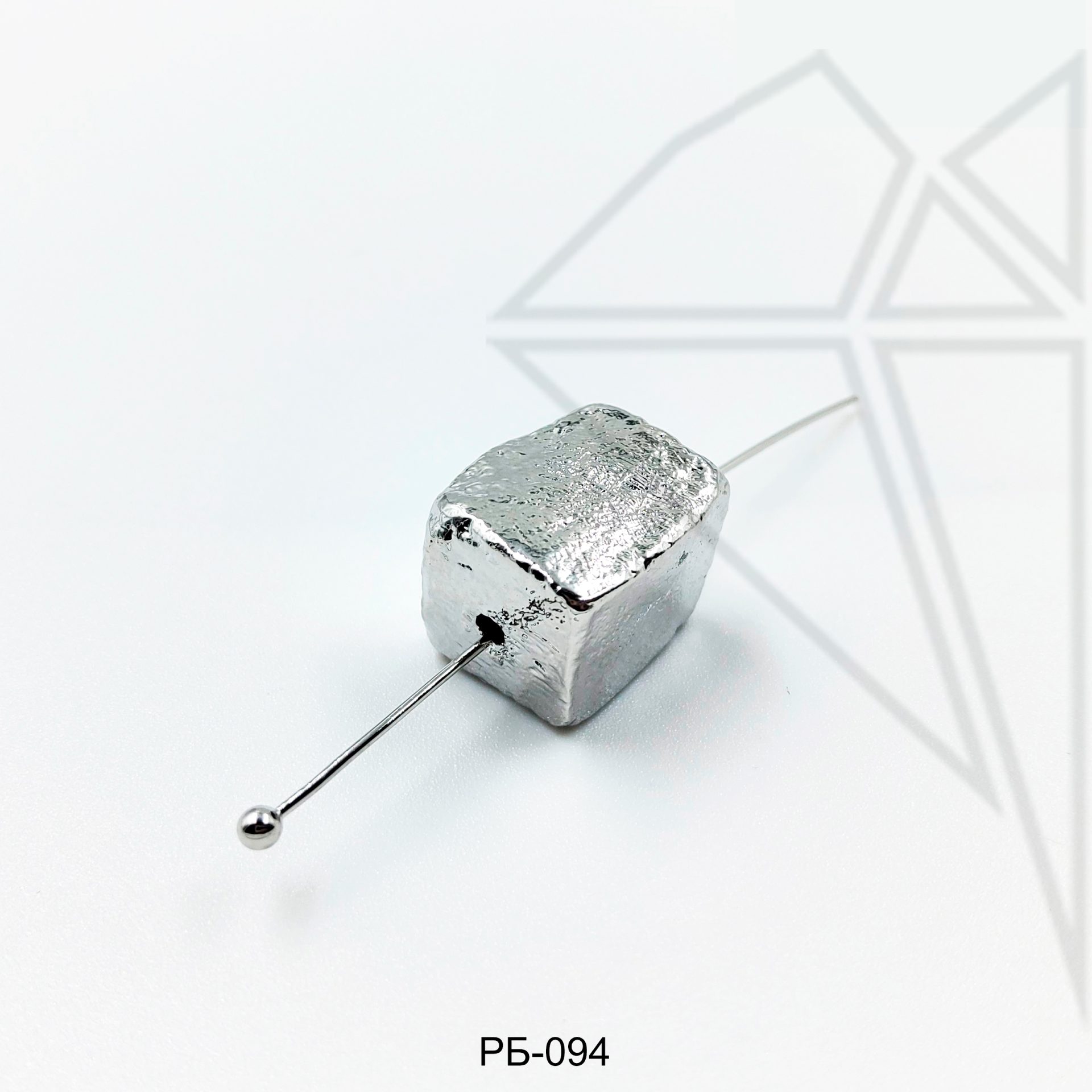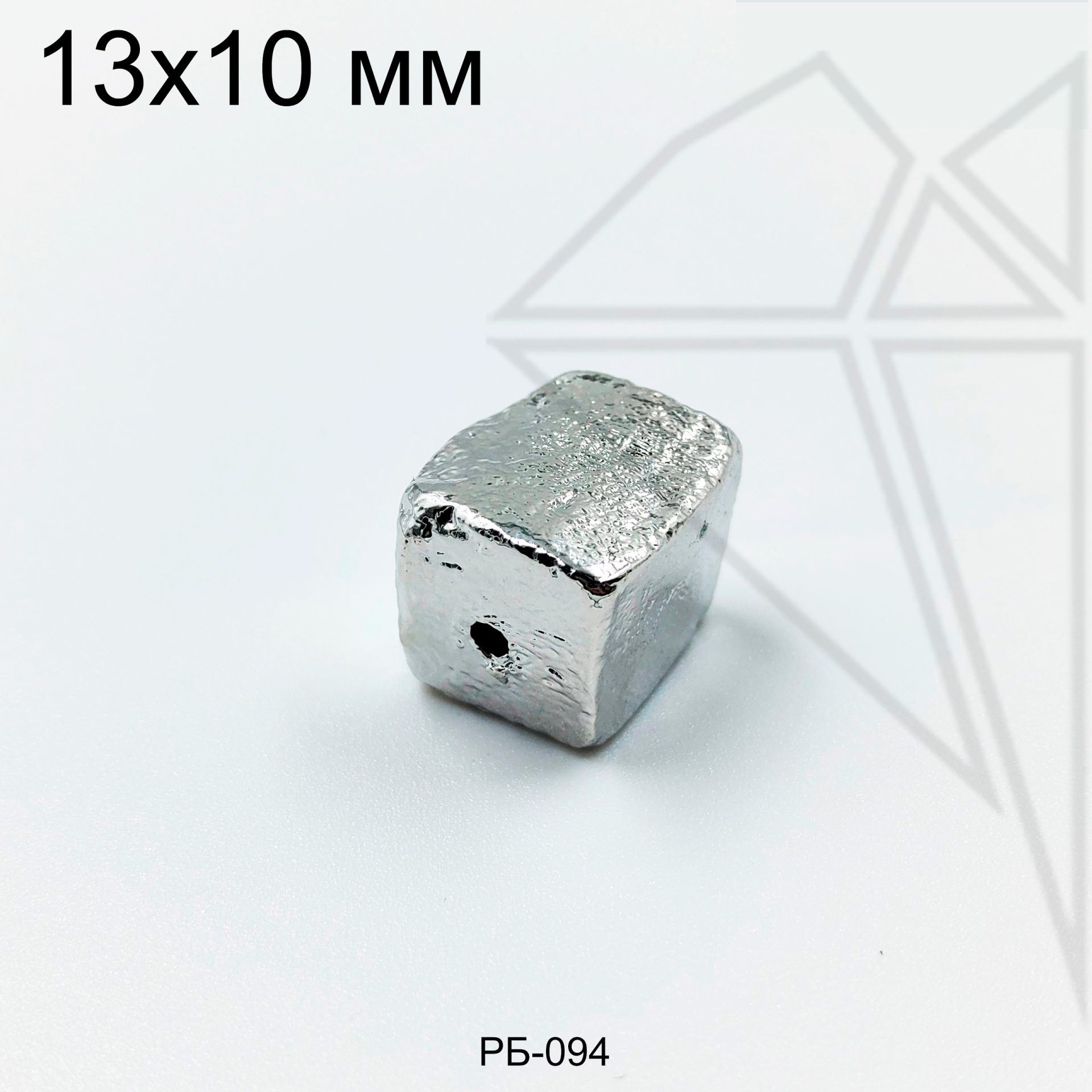 Разделительная бусина квадратная фактурная 13х10 мм класса люкс с родированным покрытием (по латуни).