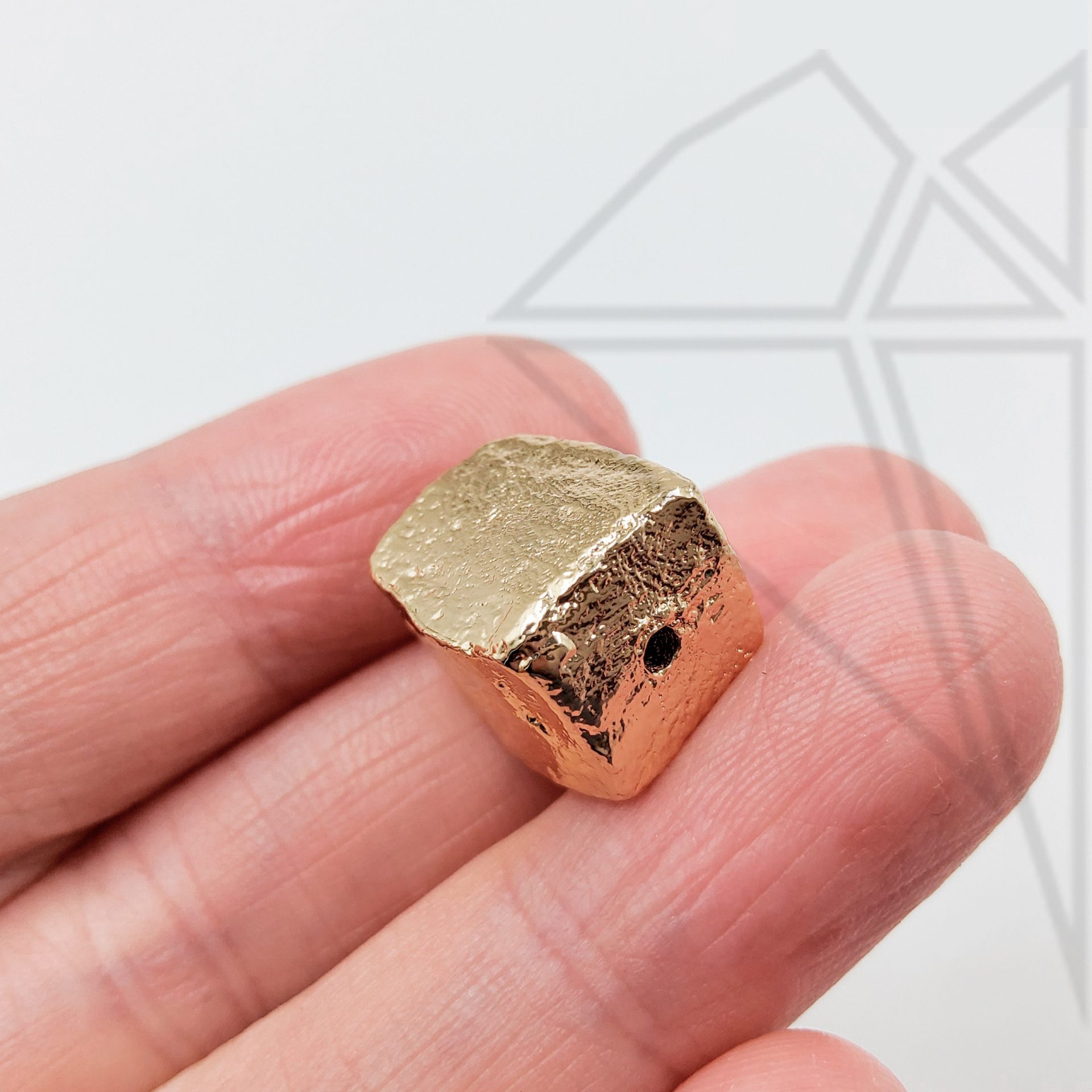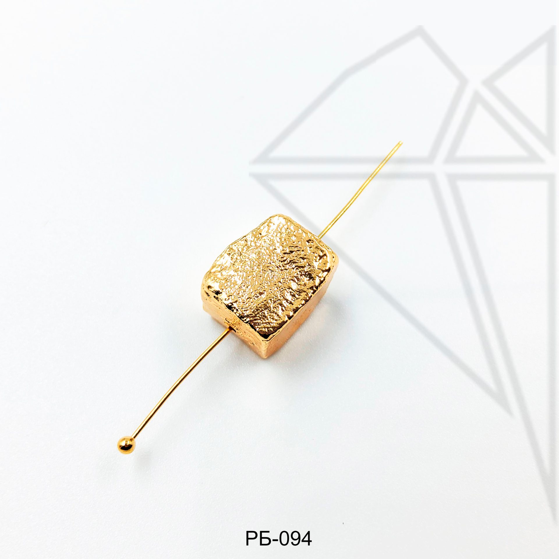 Разделительная бусина квадратная фактурная 13х10 мм класса люкс с позолоченным покрытием (по латуни).