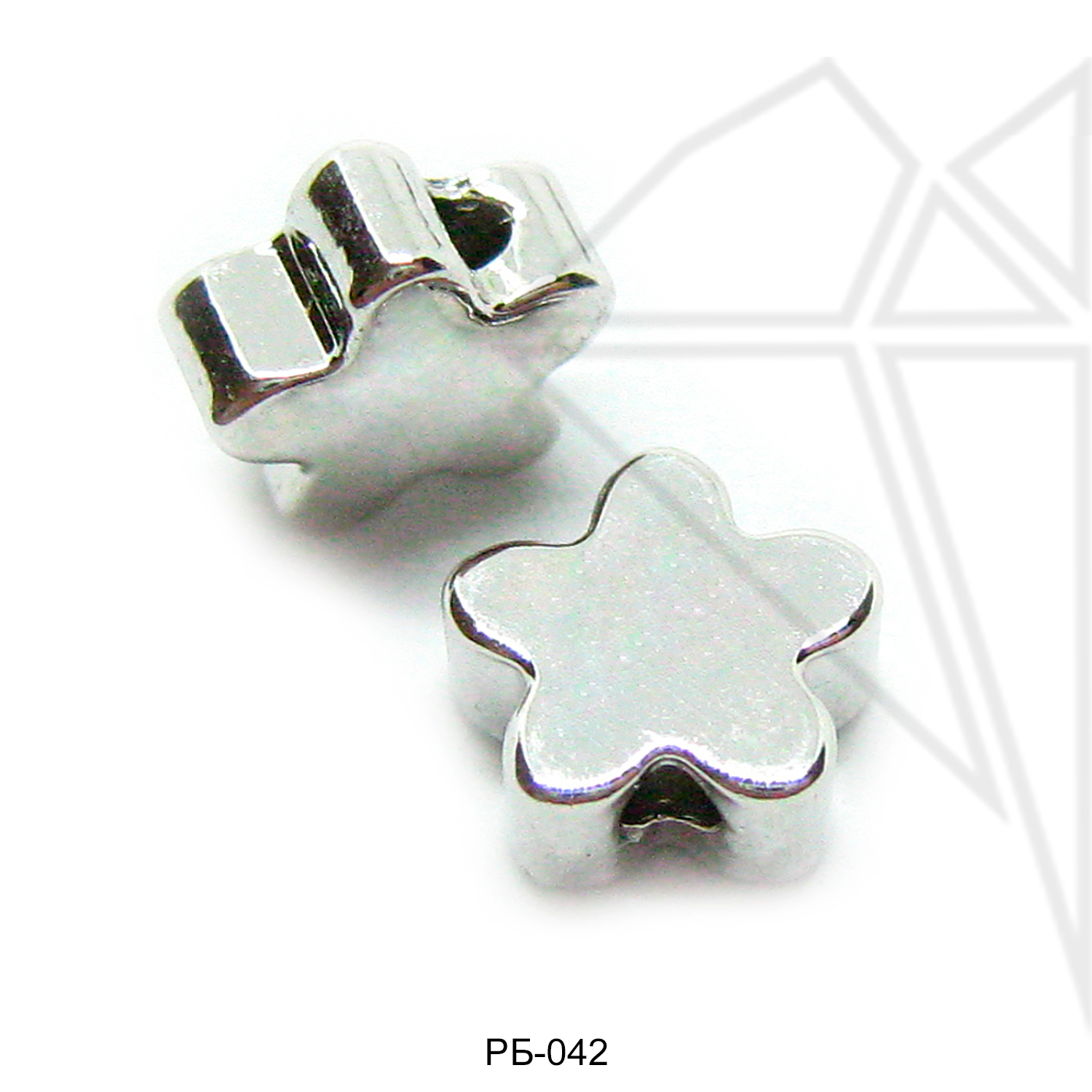 Бусины в форме звездочек класса люкс с родированным покрытием (по латуни).