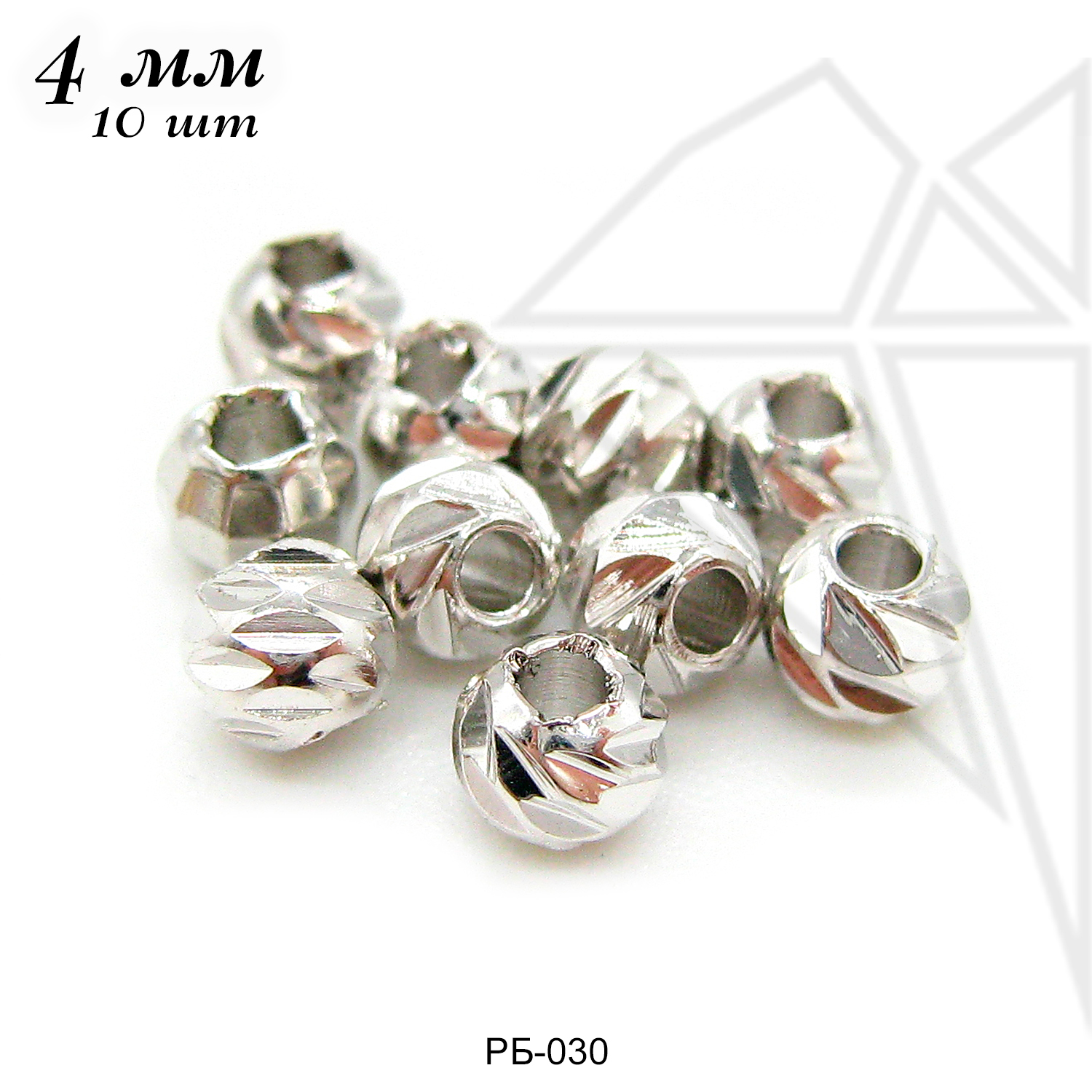 Будьте первым, кто оставил отзыв на «Разделительные бусины с огранкой 4 мм, 10 шт (родий)»
