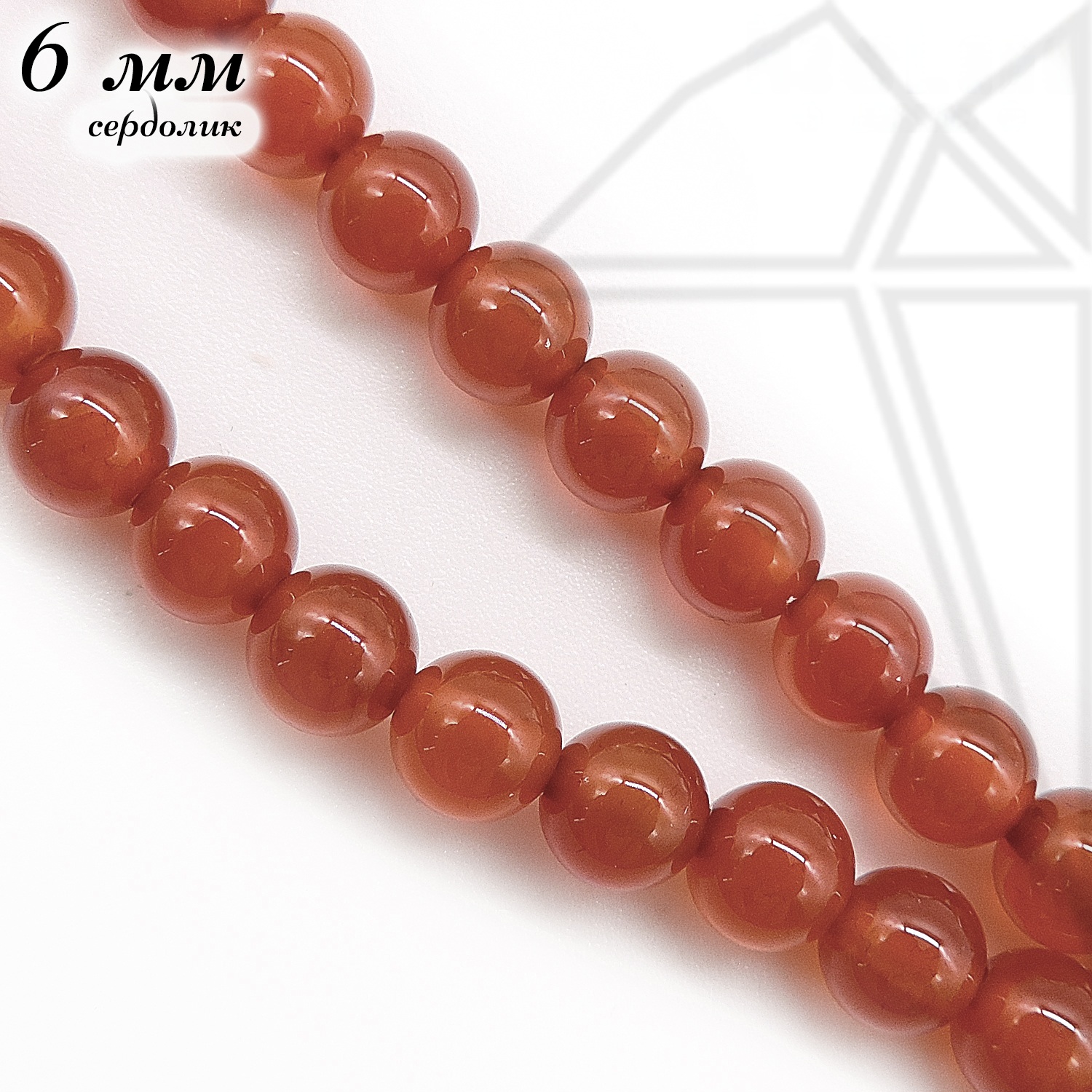 Будьте первым, кто оставил отзыв на «Сердолик круглый гладкий глянцевый 1/2 нити 6 мм»