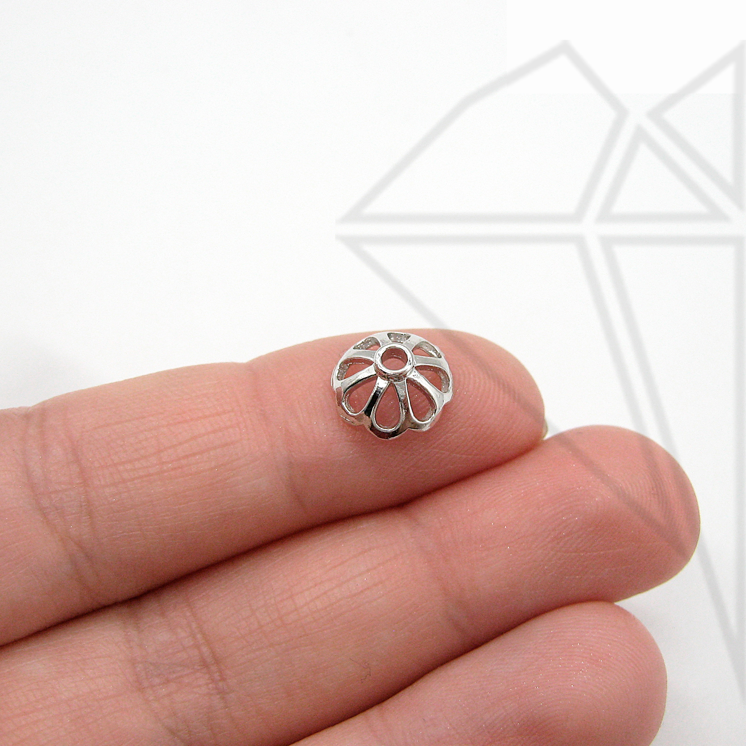 Шапочки для бусин класса люкс с родированным покрытием (по латуни).