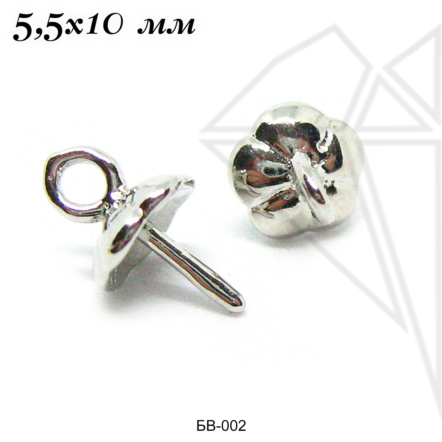Шапочки для вклейки с родированным покрытием (по латуни).