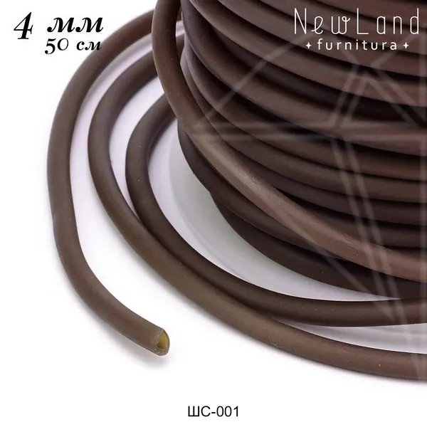 Каучуковый шнур круглый гладкий матовый для изготовления украшений коричневого цвета.