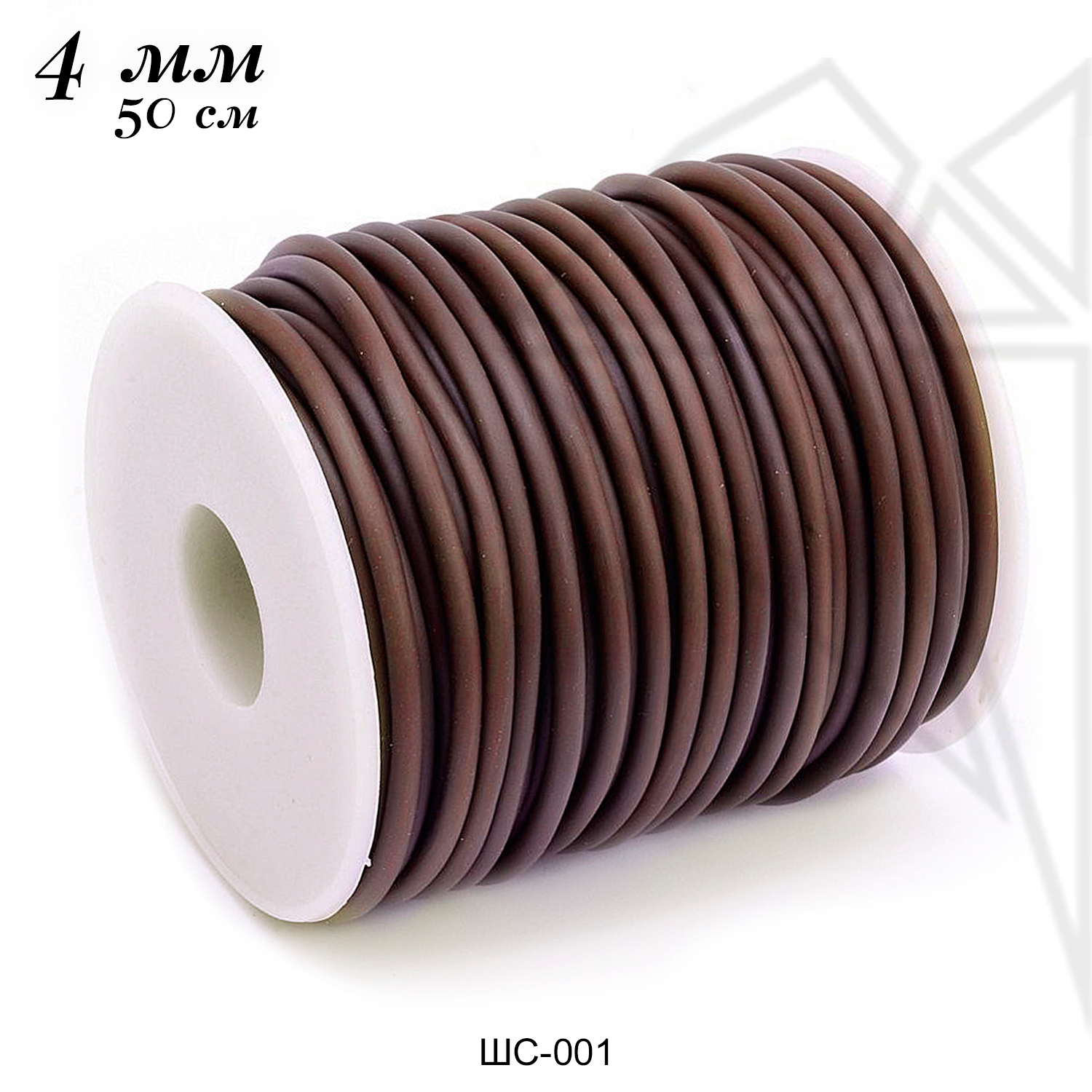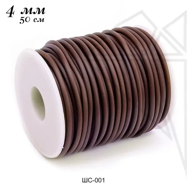 Каучуковый шнур круглый гладкий матовый для изготовления украшений коричневого цвета.