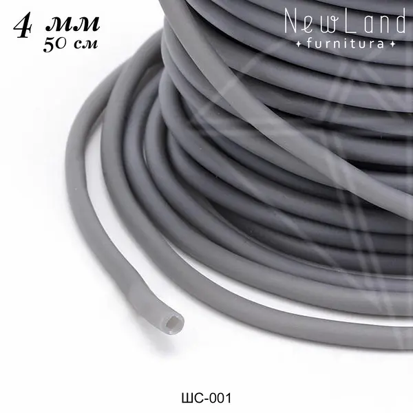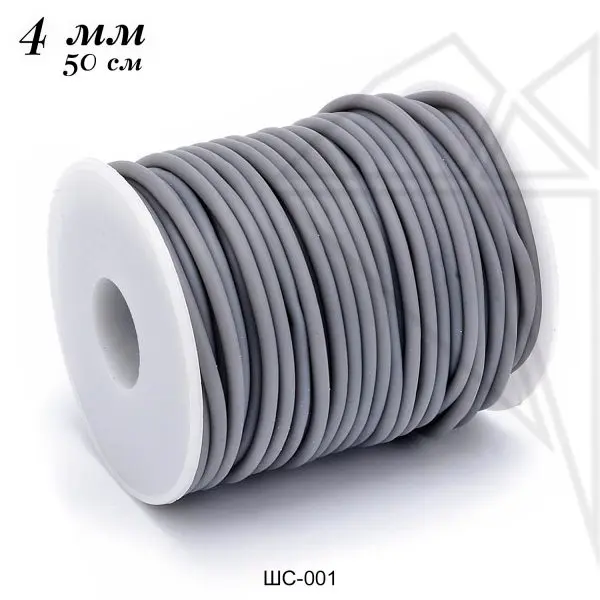 Каучуковый шнур круглый гладкий матовый для изготовления украшений серого цвета.