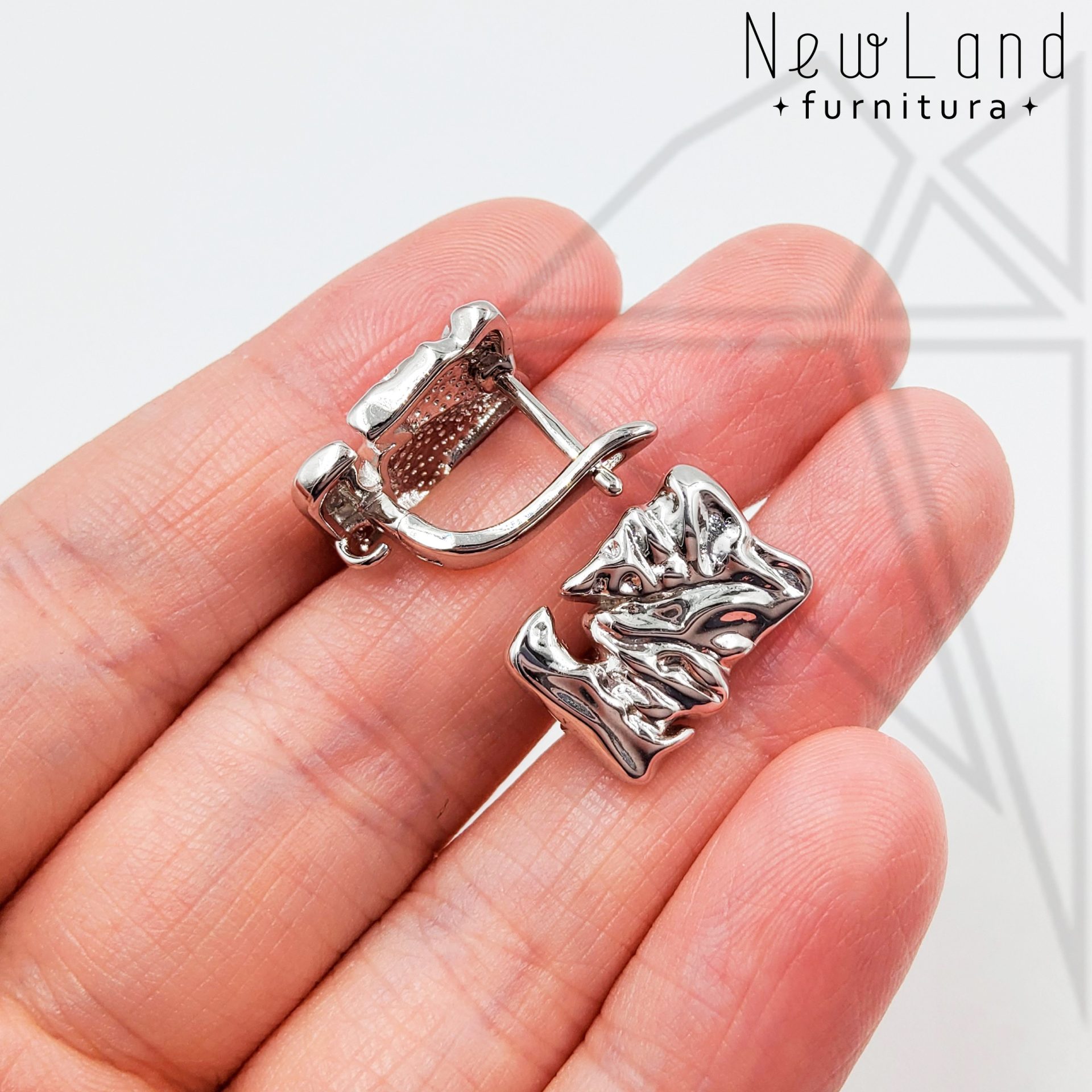 Швензы прямоугольной формы мятые с английским замком класса люкс с родированным покрытием (по латуни).