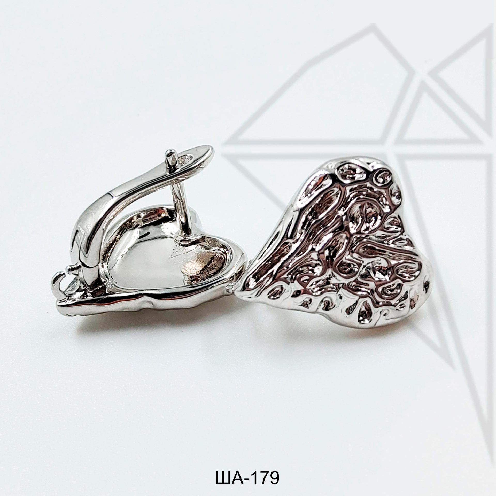 Швензы в форме фактурного сердца с английским замком 17 мм класса люкс с родированным покрытием (по латуни).